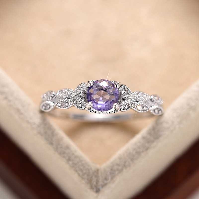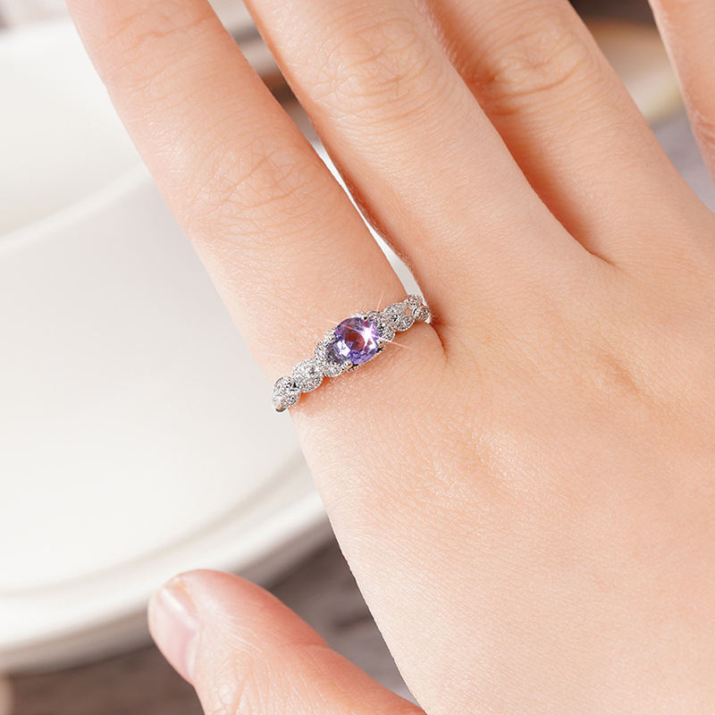 曹適フランスロマンチック紫ジルコン指輪軽贅沢高級感貴族気質アクセサリーqueen rings