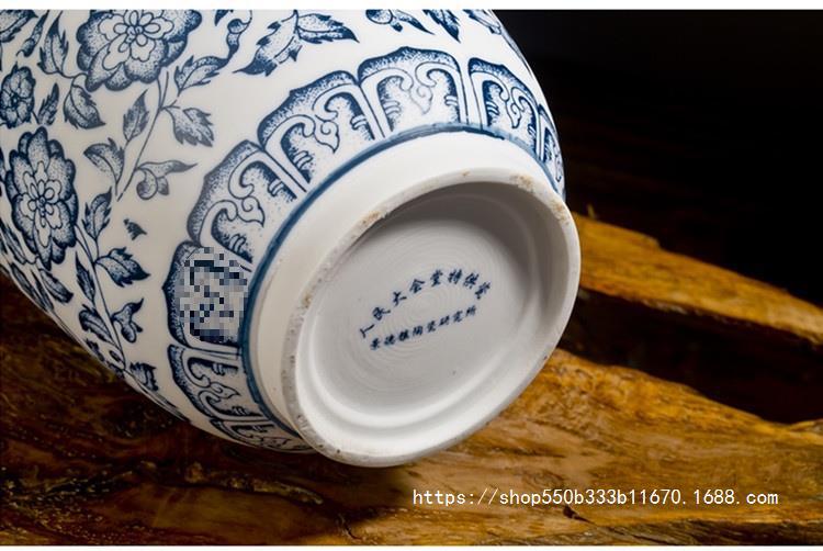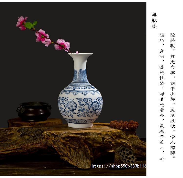 景徳鎮陶磁器は古の薄い胎青花磁器の花瓶の客間に飾られています。
