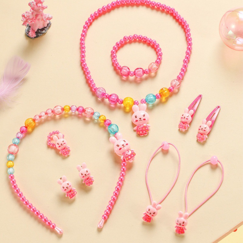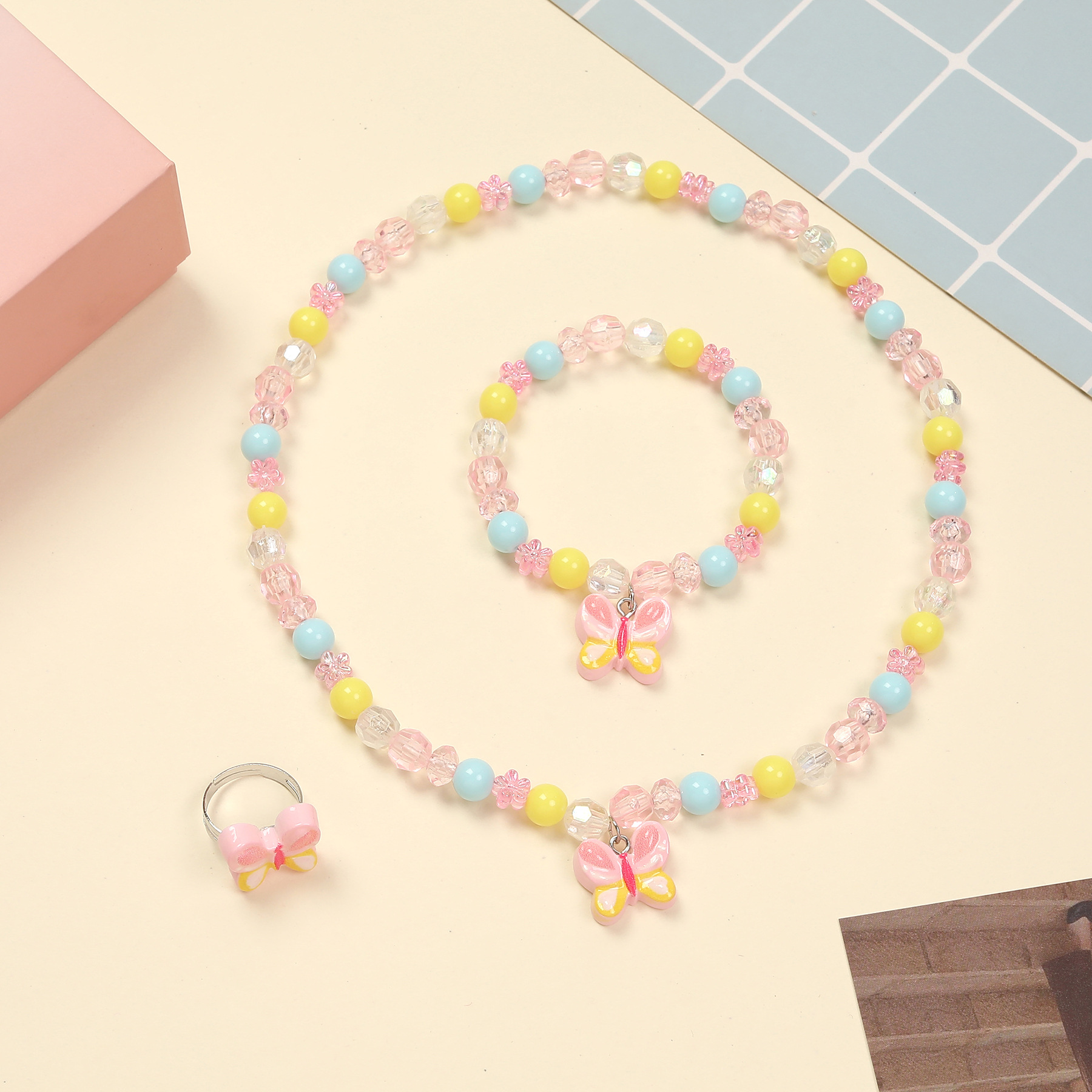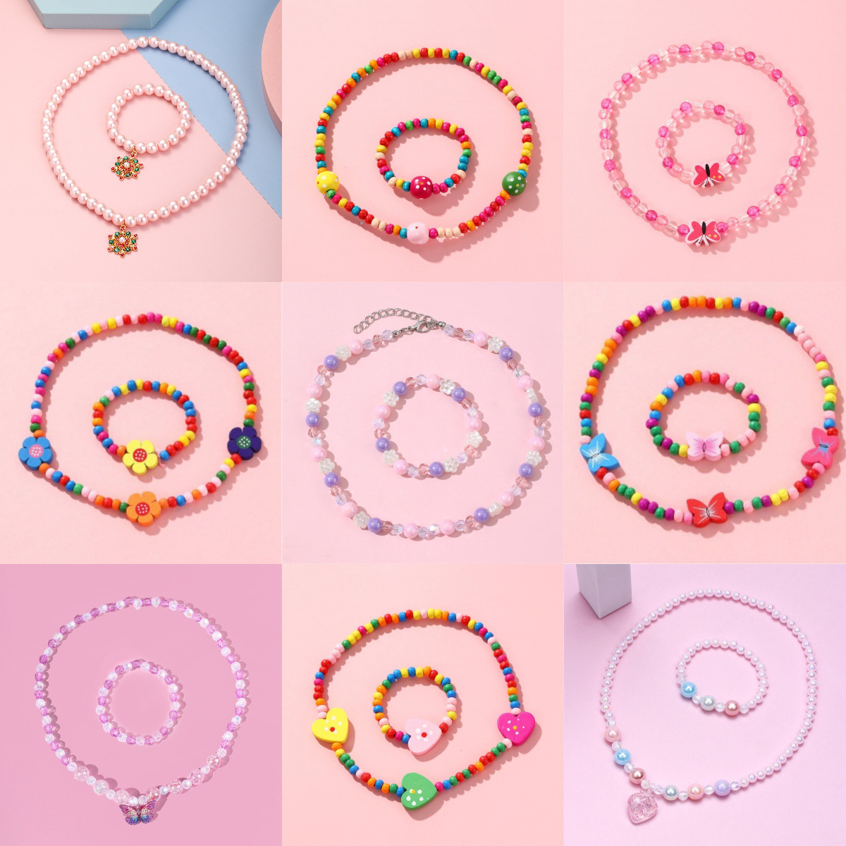 2024クロスボーダーカラービーズネックレスブレスレットリング女の子子供漫画動物真珠セットアクセサリー