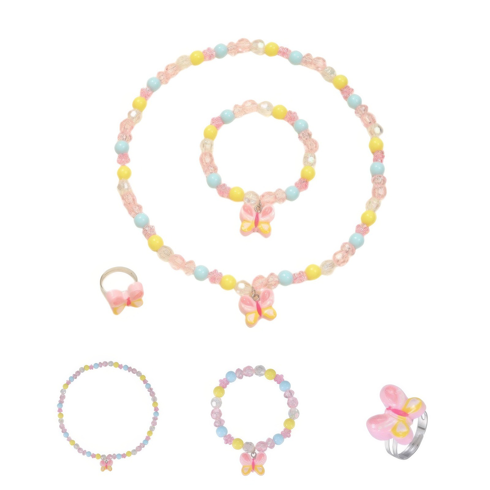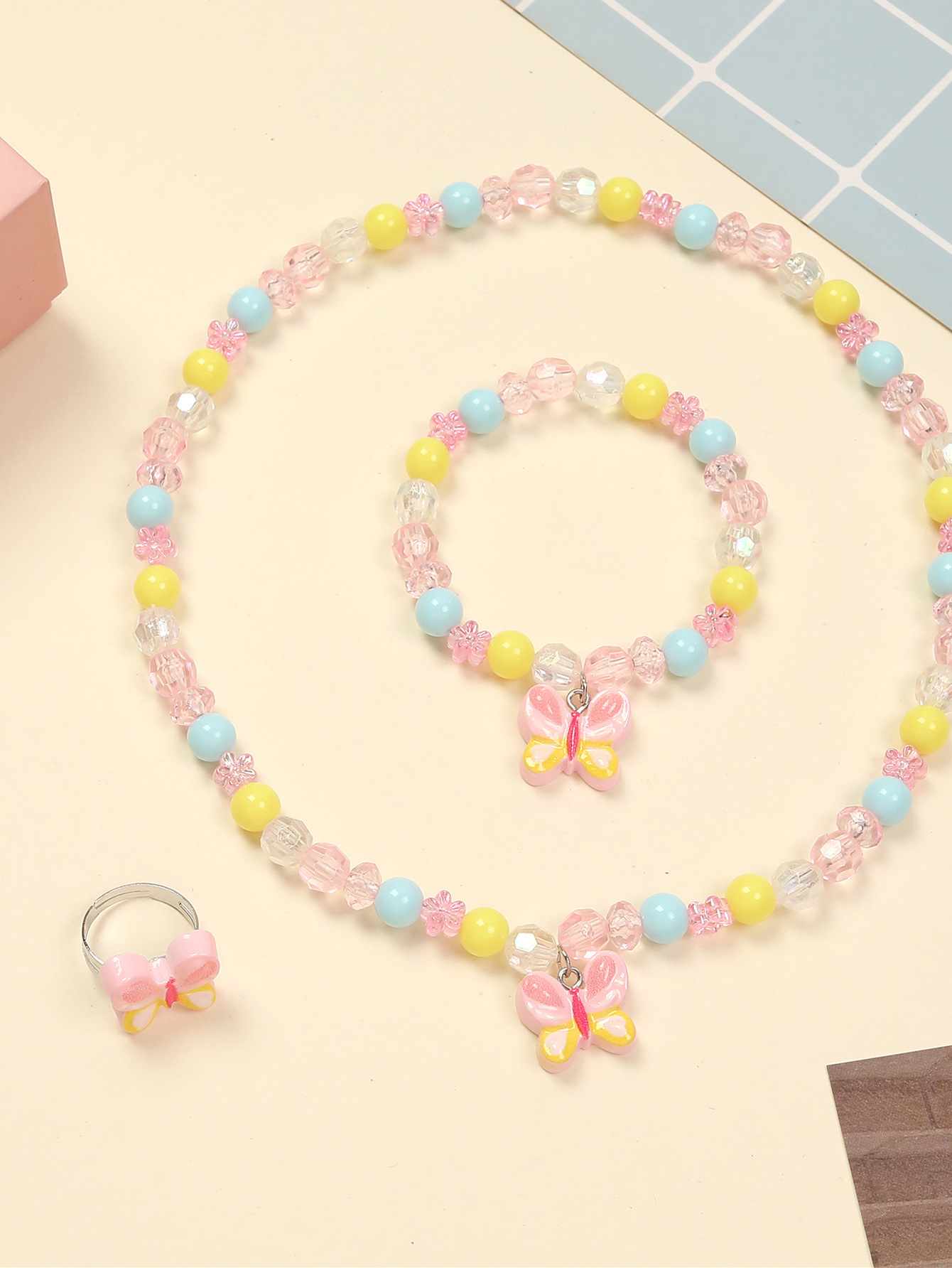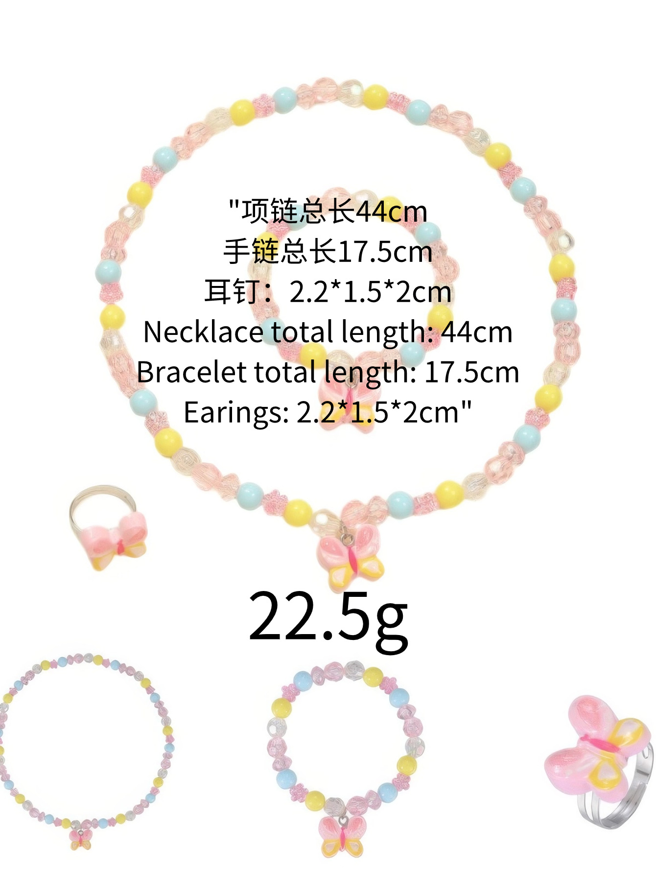 2024クロスボーダーカラービーズネックレスブレスレットリング女の子子供漫画動物真珠セットアクセサリー