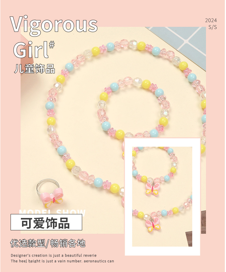 子供用ネックレスセットアクリルドリルクロスボーダー女の子プリンセス风ins子供用ブレスレットメッキプラスチックビーズビーズビーズ