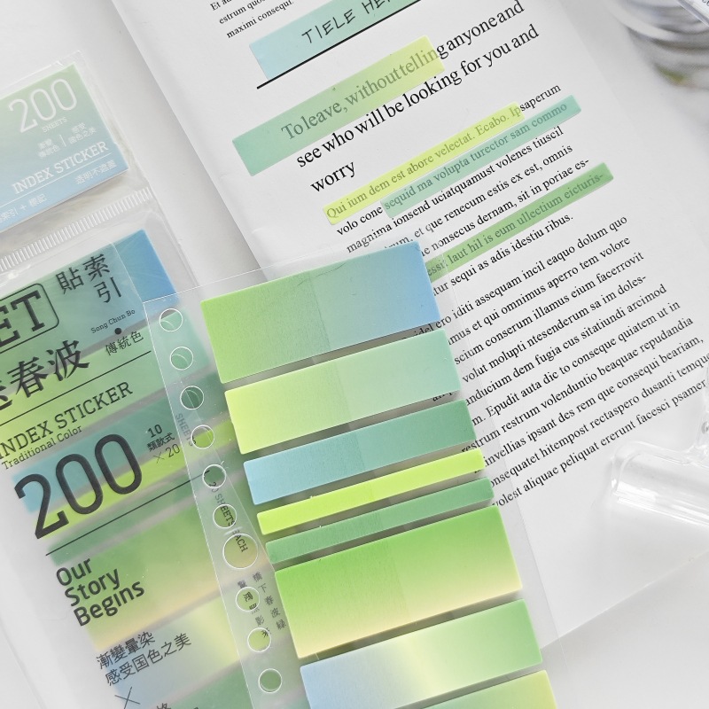 外国貿易クロスボーダーグラデーションカラーペット付箋透明インデックスステッカー細いストリップメモを取るための粘着メモステッカー