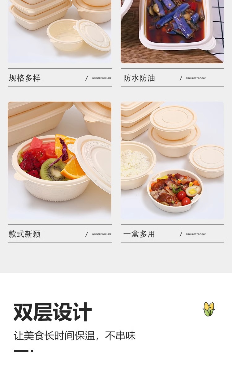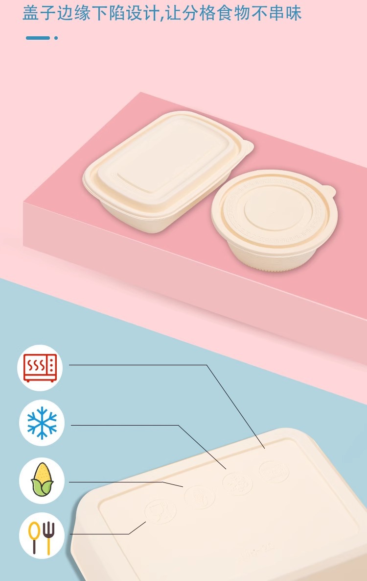 ニューウェル弁当箱 コーンスターチ製 生分解性仕切り弁当箱 蓋付きスープボウル 持ち帰り用食品グレード弁当箱