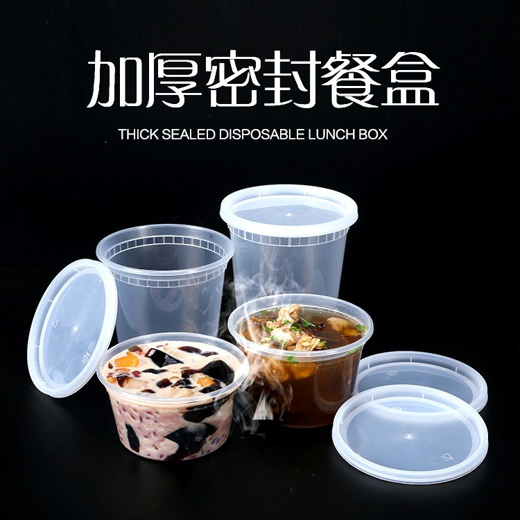 ロック付き使い捨てテイクアウトデザート包装箱、丸型密封、ゼリー草氷粉ボウル、スープカップ、盗難防止お粥バケツ