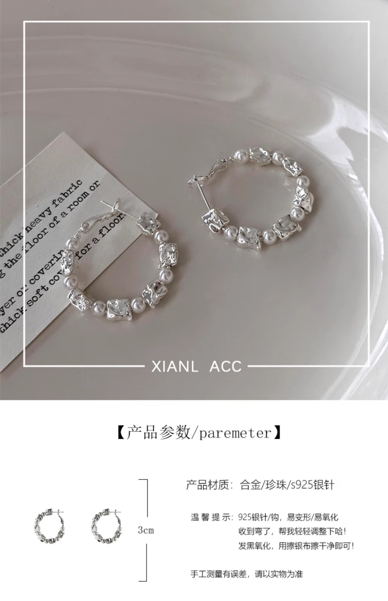 小众c形圈2026新款珍珠耳环耳饰女夏天轻奢高级感气质耳圈爆款潮