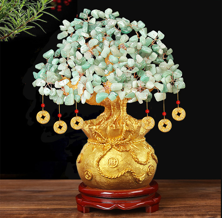 水晶招財樹置物家庭用客間酒棚元宝発財樹装飾品創意工芸品金振り木