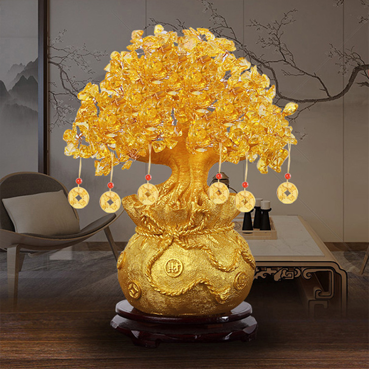 黄水晶発財樹招財置物家庭酒棚客間装飾新年店小金の木開業プレゼント