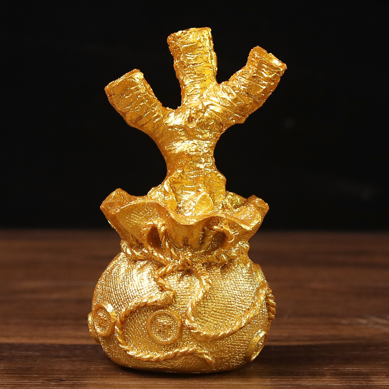 黄水晶の金持ちの木の金の木の福袋のお金の袋の樹脂の置物のテレビの酒の箱の装飾品の工芸の置物の卸売り