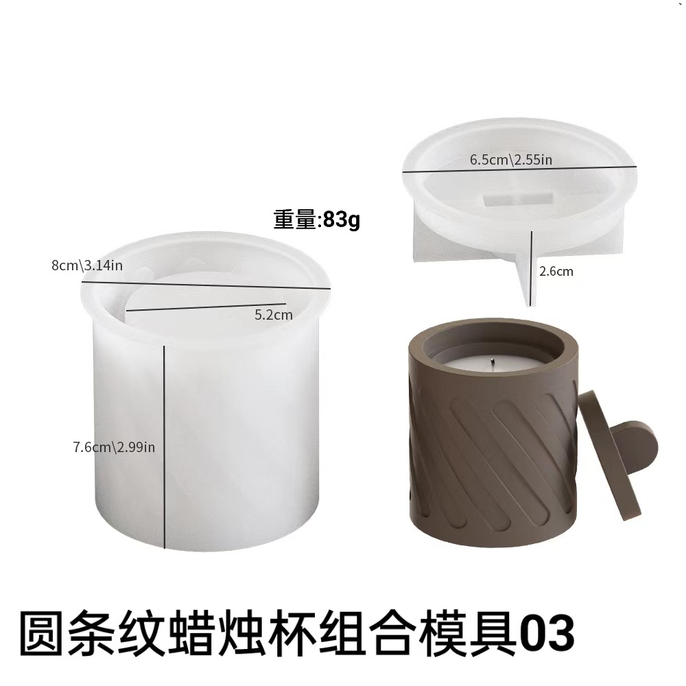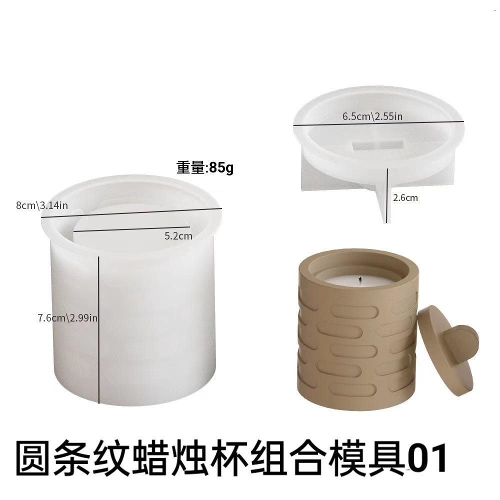 Diy水晶滴ゴム円形ストライプ収納缶金型石膏円柱蓋付き容器キャンドルカップシリコン金型