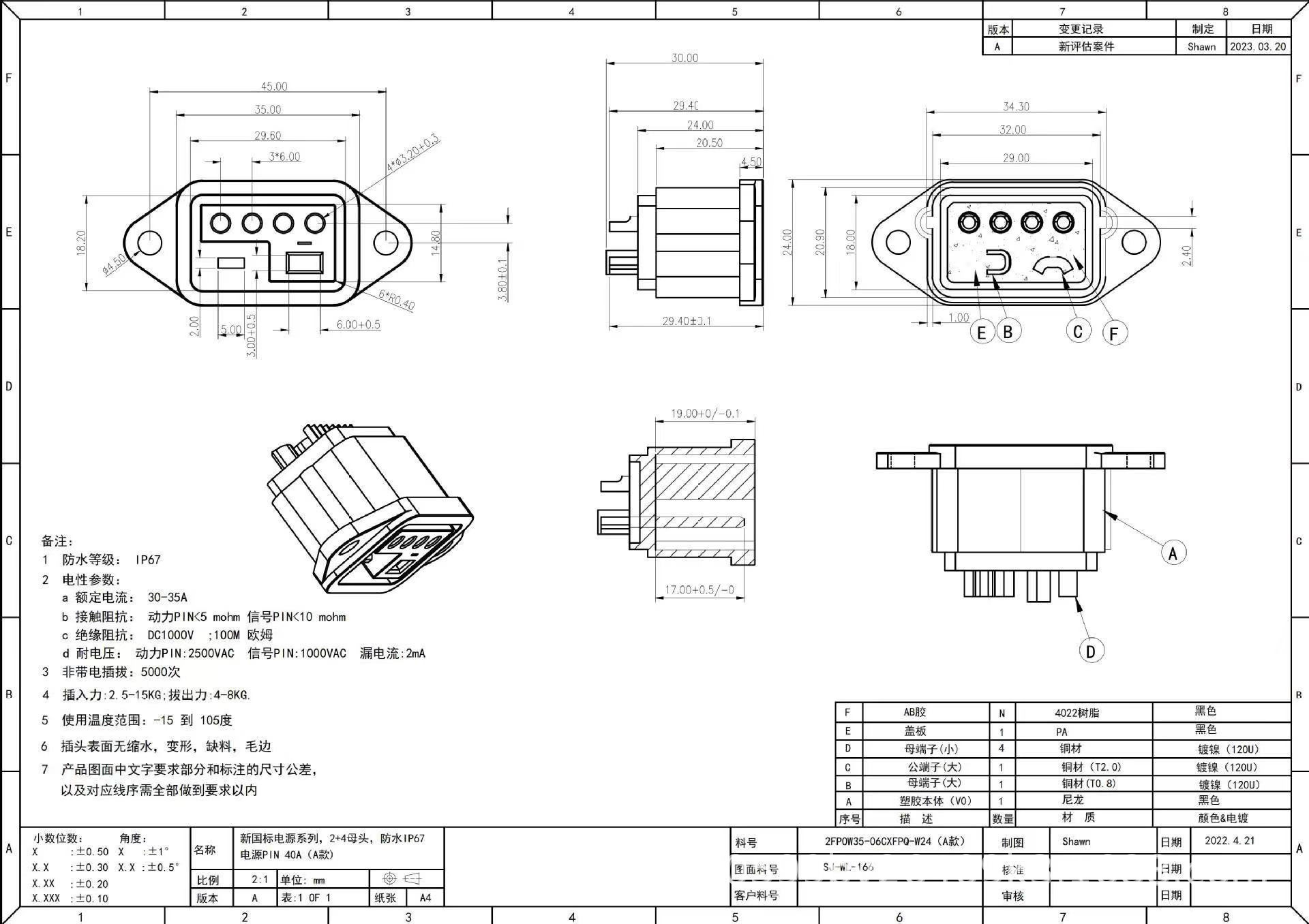 電気自動車新国標プラグ充電ソケット2 + 4母座カバー付きリチウム電池充放電ソケット雄母プラグ