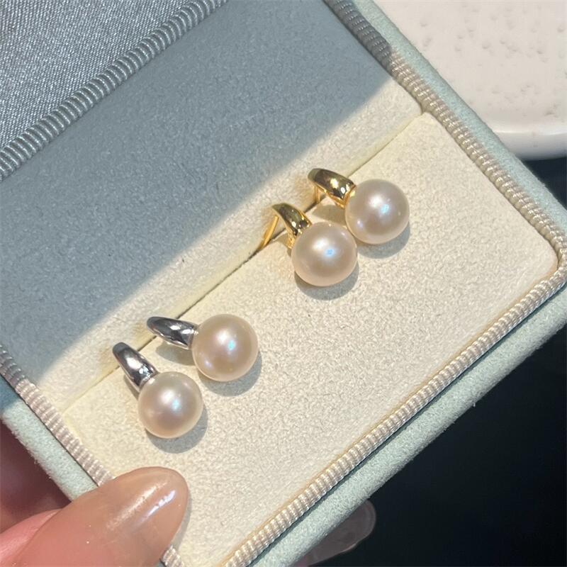 诸暨淡水珍珠大耳钩批发通体S925纯银高跟鞋耳勾简约百搭养耳洞