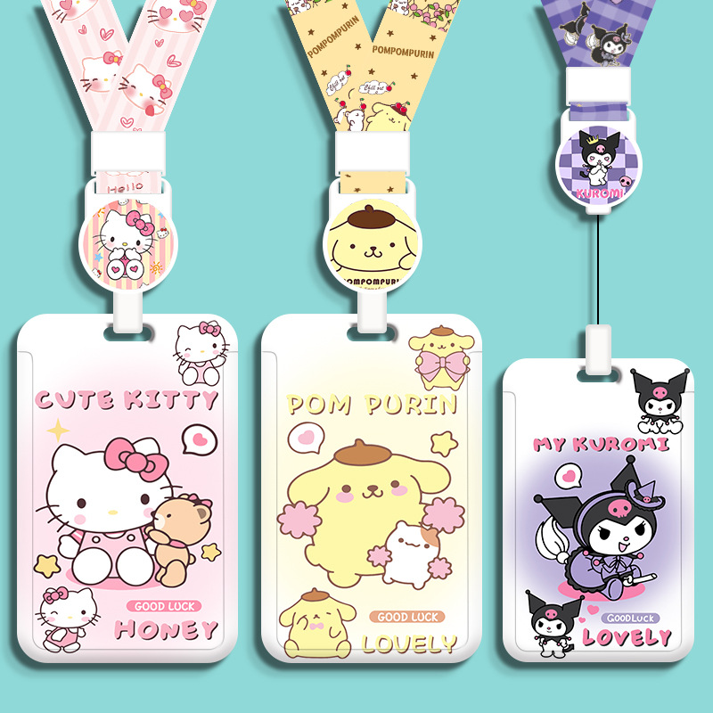 学生卡套校园卡工作证件套伸缩挂脖绳公交地铁门禁硬饭卡套三丽鸥