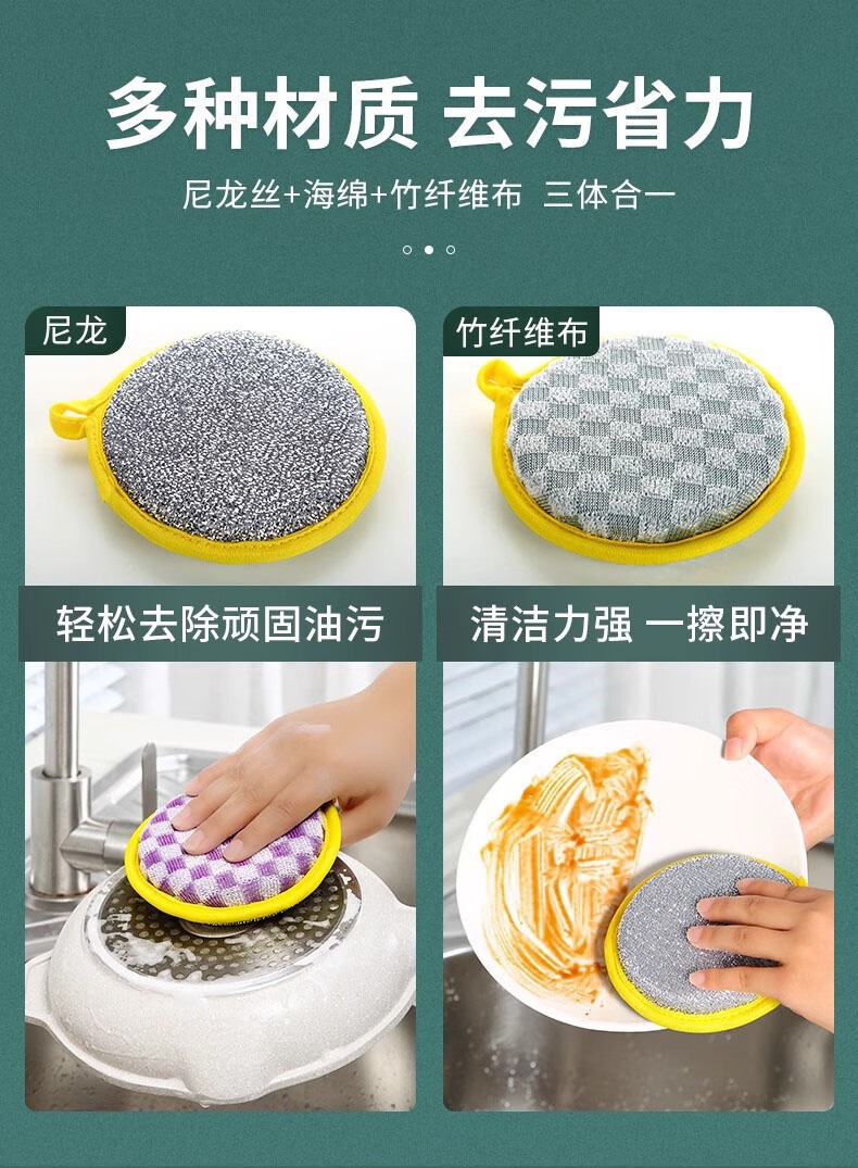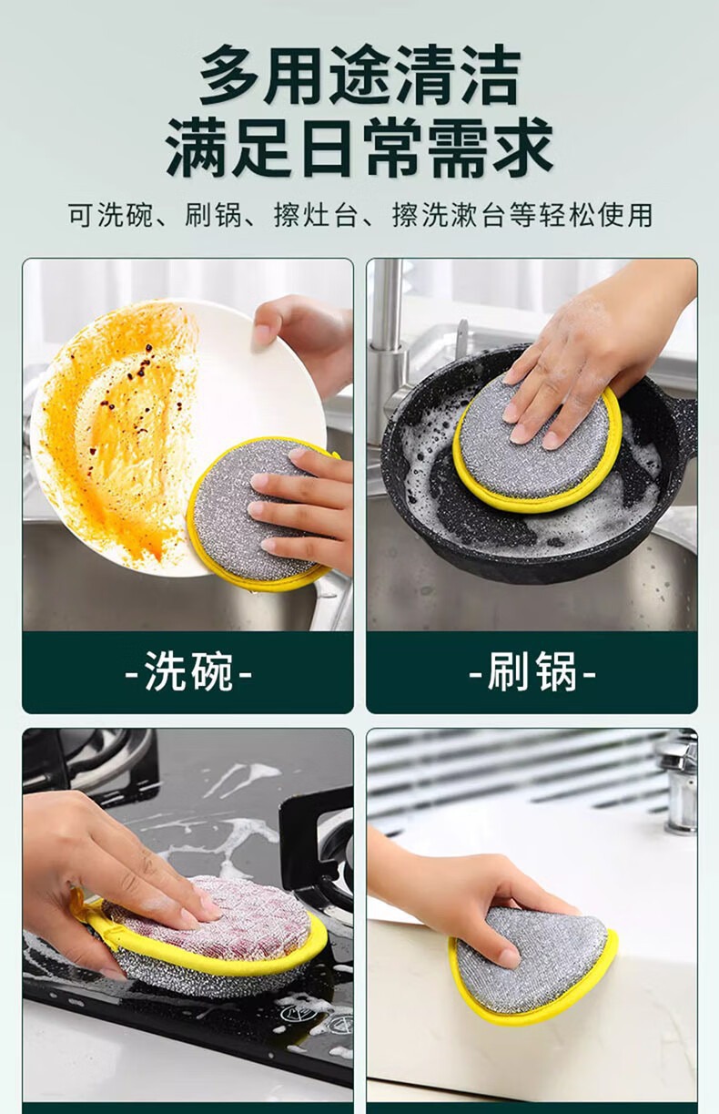 両面スポンジ食器洗いブラシ、鍋洗いキッチン掃除布、家庭用油汚れ落とし、食器洗い布、魔法の掃除布
