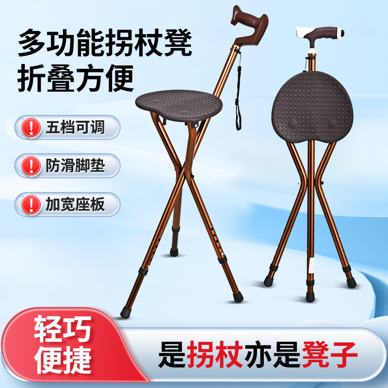 老人の松葉杖の腰掛けは携帯して椅子のアルミニウム合金を畳んで多機能の松葉杖の腰掛けを折り畳みます。