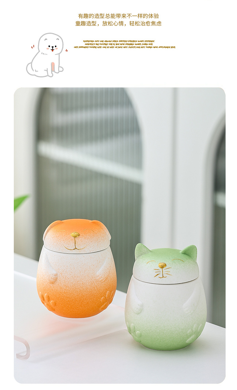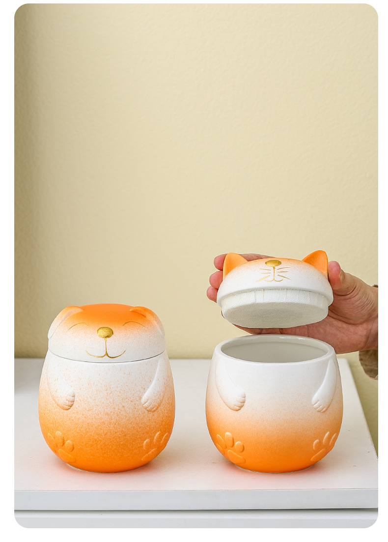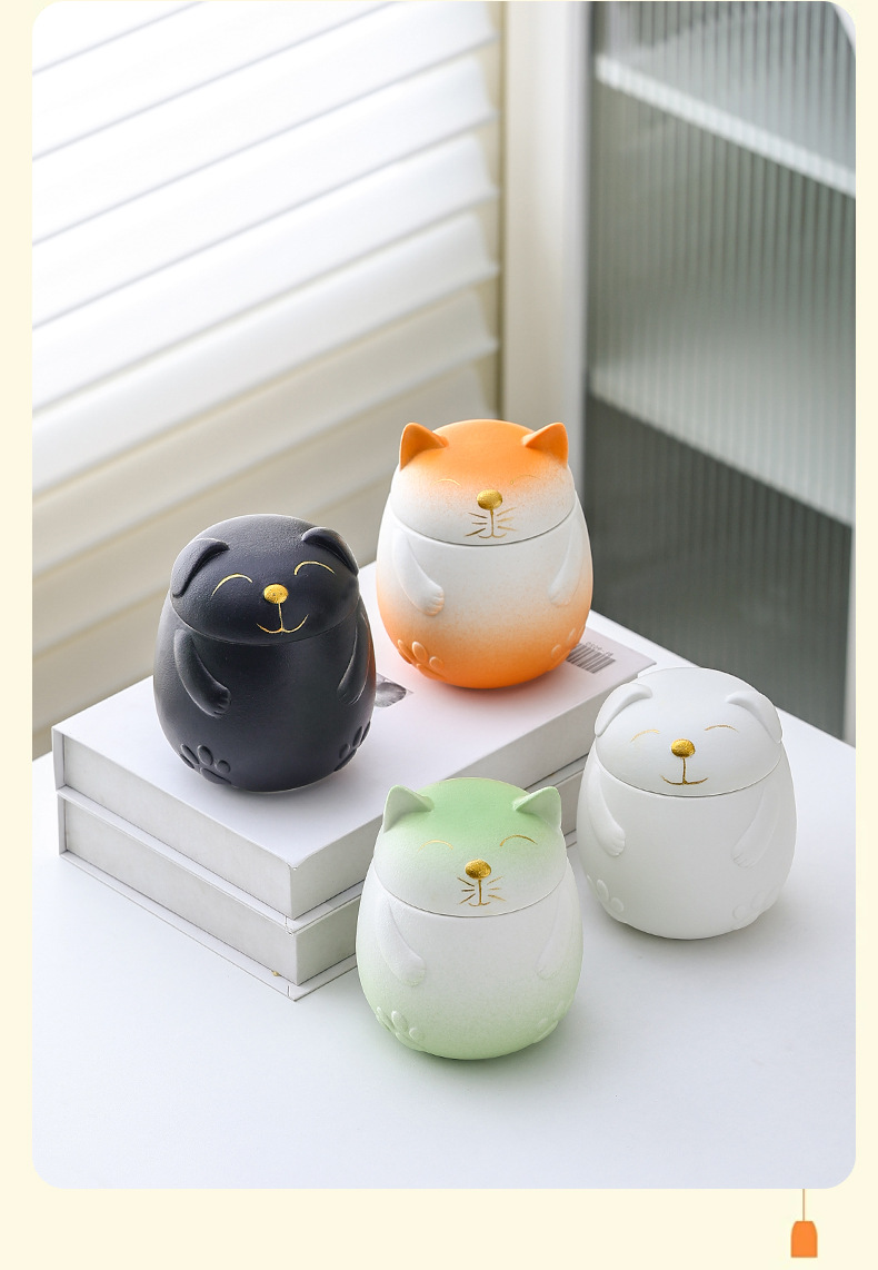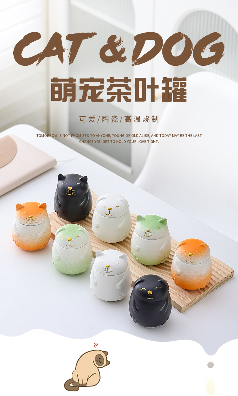 かわいい創意萌え陶磁器茶葉缶密封貯蔵タンク招き猫柴犬茶倉防湿旅行携帯缶