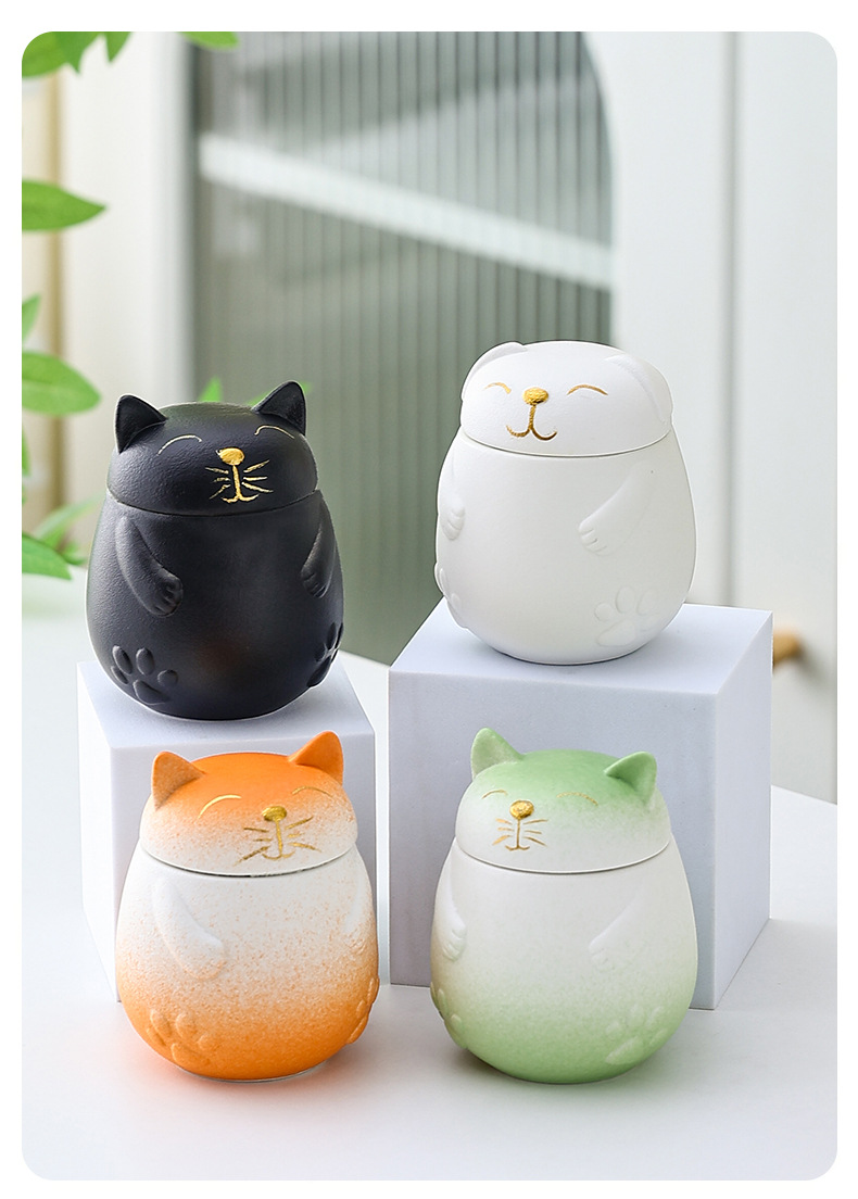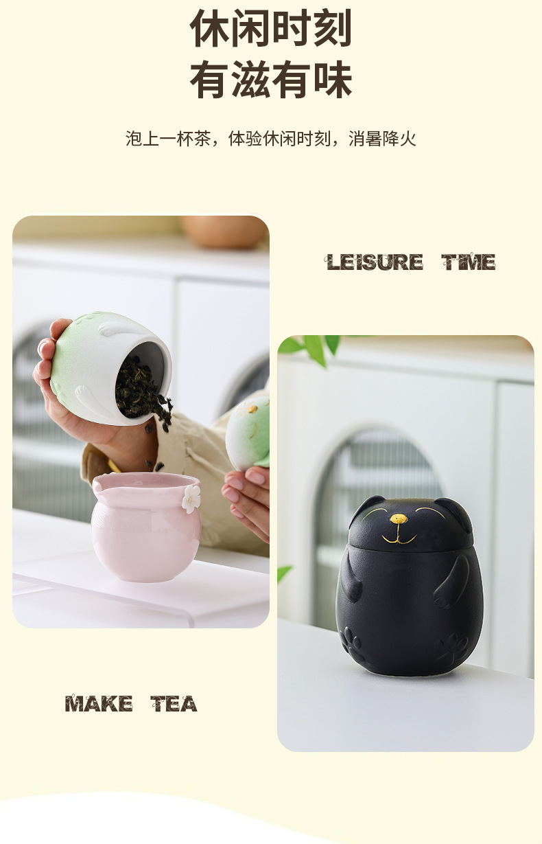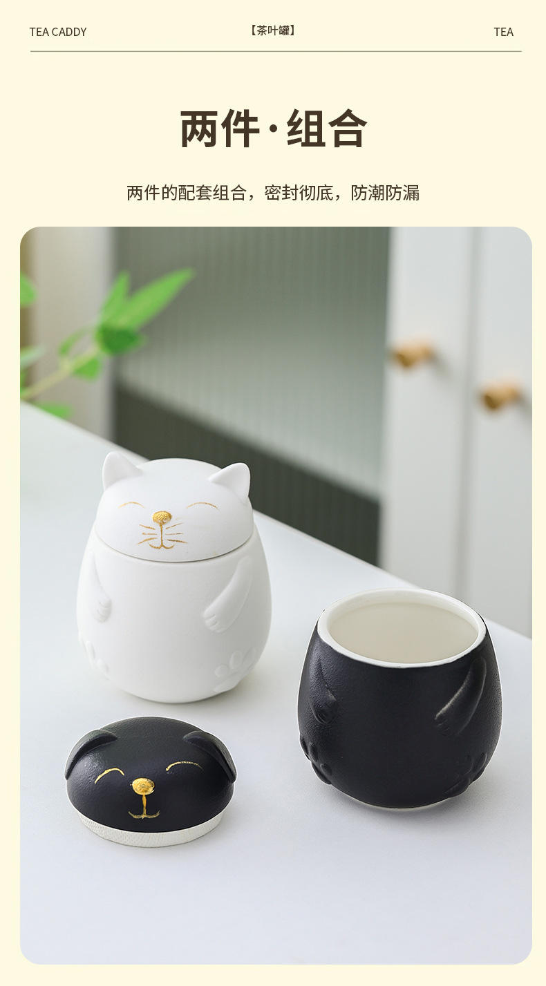 萌え猫茶葉缶粗陶密封貯蔵缶ポータブル旅行茶倉ペット缶密封缶陶磁器缶間食