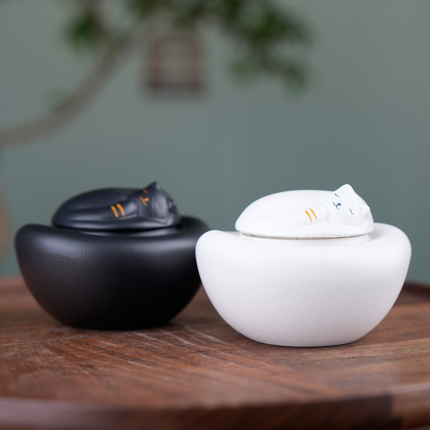 陶瓷猫摆件猫咪茶叶罐密封罐小猫收纳瓶香粉罐防潮储物罐子睡猫罐