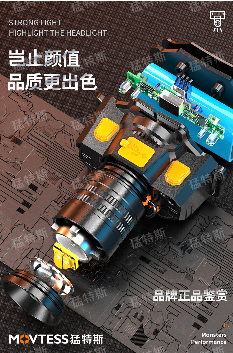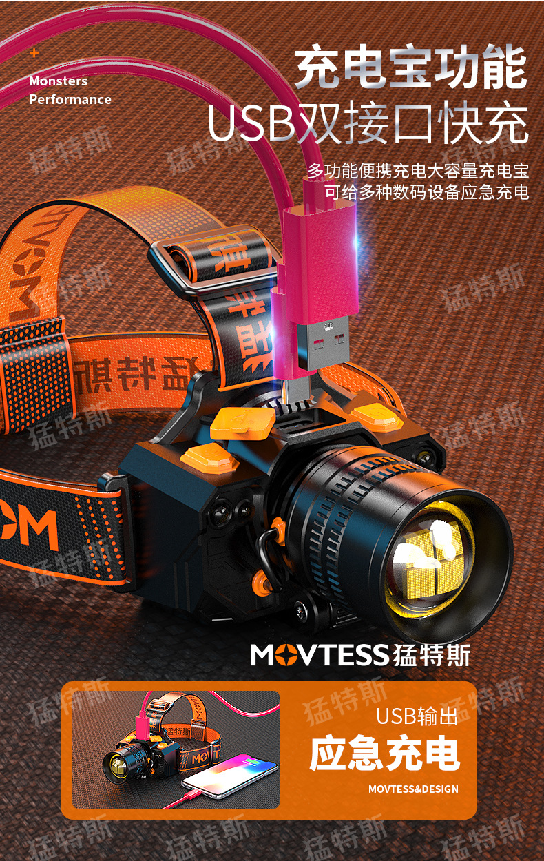新型超亮強光感応ヘッドライトUSB充電強光屋外夜釣り防水小ヘッドライト