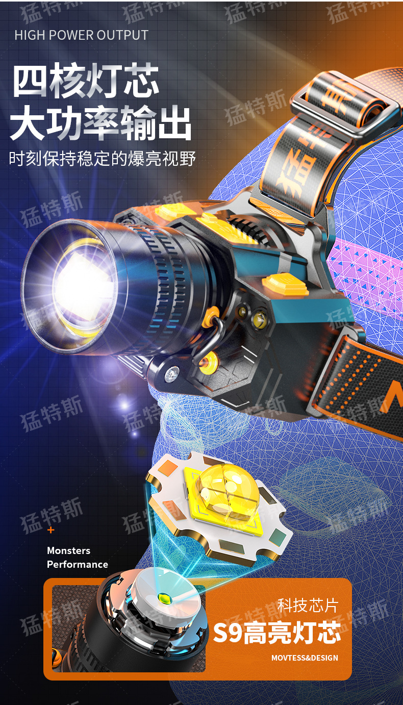 LEDヘッドライト強光充電屋外夜釣り長距離懐中電灯超亮頭戴式鉱灯