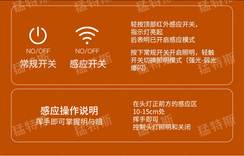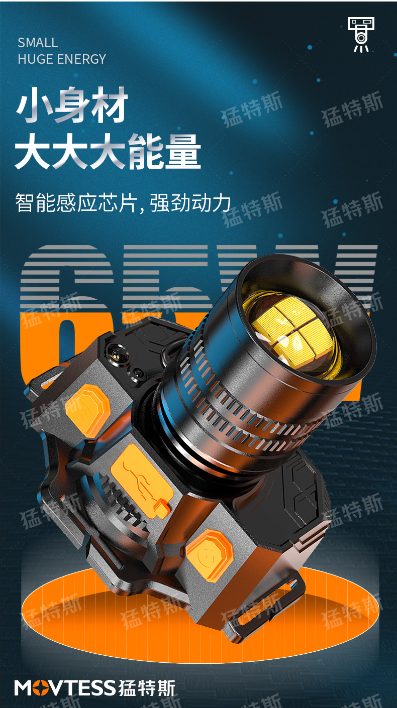 强光感应头灯 带磁吸多功能工作灯转角头灯三色可选