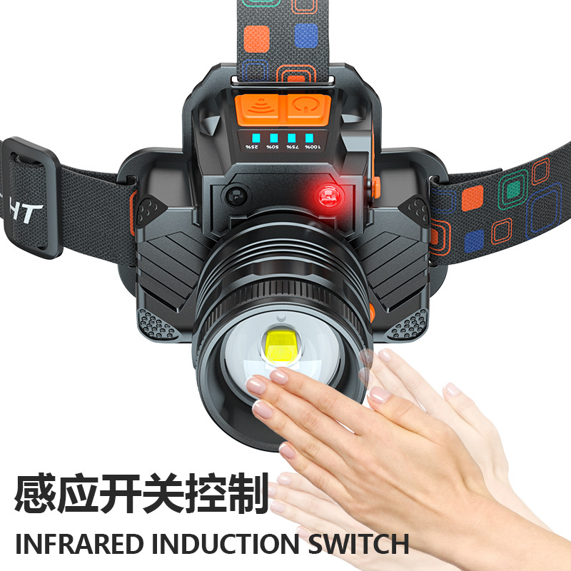 强い光LEDセンサーヘッドライト超明るい家庭用屋外远射ズーム夜钓りライトヘッドセット便利鉱山ライト懐中电灯