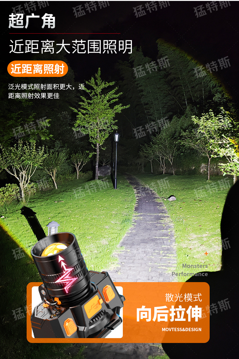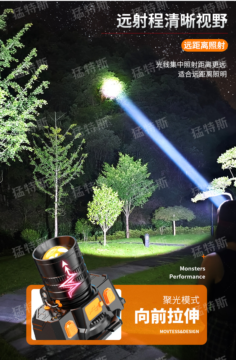 LED誘導ヘッドライト強光充電屋外夜釣り長距離懐中電灯超明るいヘッドセット照明鉱山ランプ