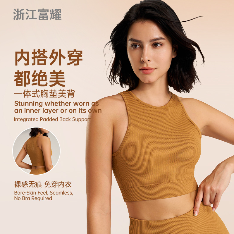 浙江富耀ヨガスポーツフィットネスブラ速乾ブラ美背ベストインナー耐衝撃クロスボーダー