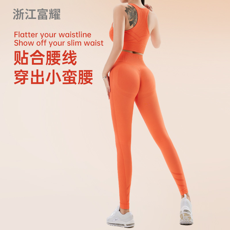 秋と冬の屋外ヨガスポーツスーツハイウエストヒップフィットネスパンツ耐衝撃速乾性通気性ブラジャー女性クロスボーダー卸売