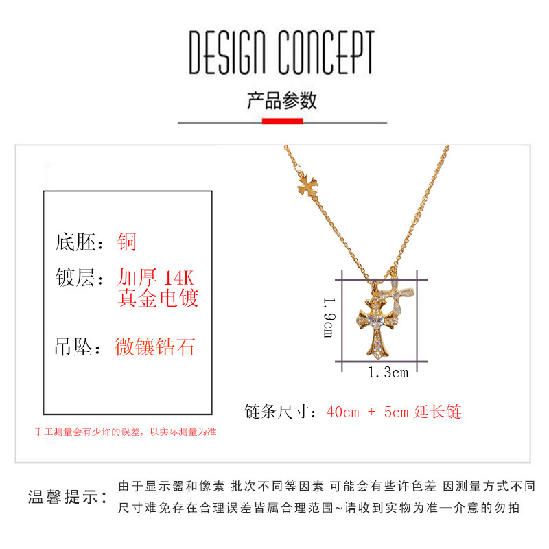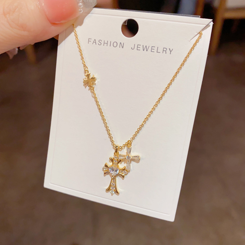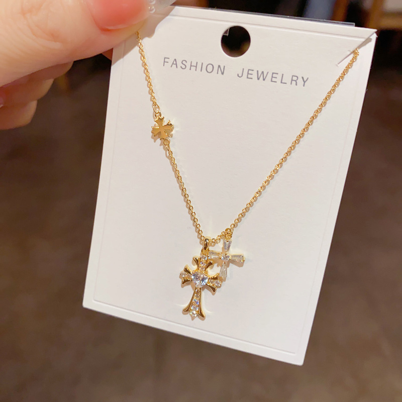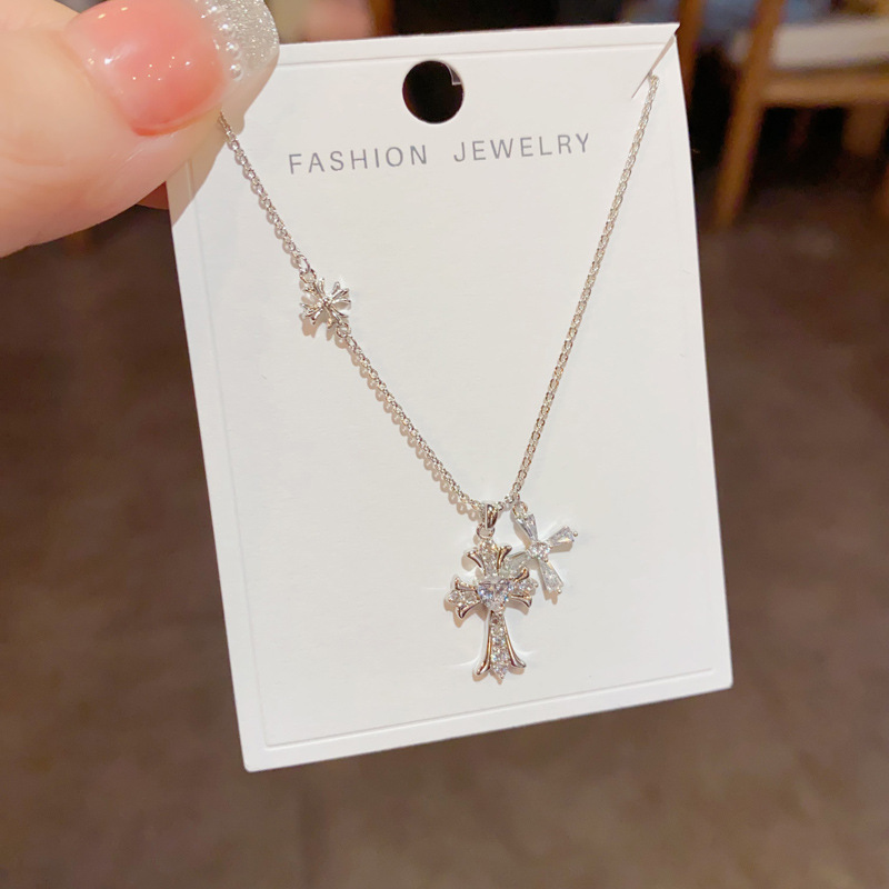韓国版の精巧な気質のファッションのジルコンの双クロスのペンダントのネックレスの個性は軽くて豪華で高級感の鎖