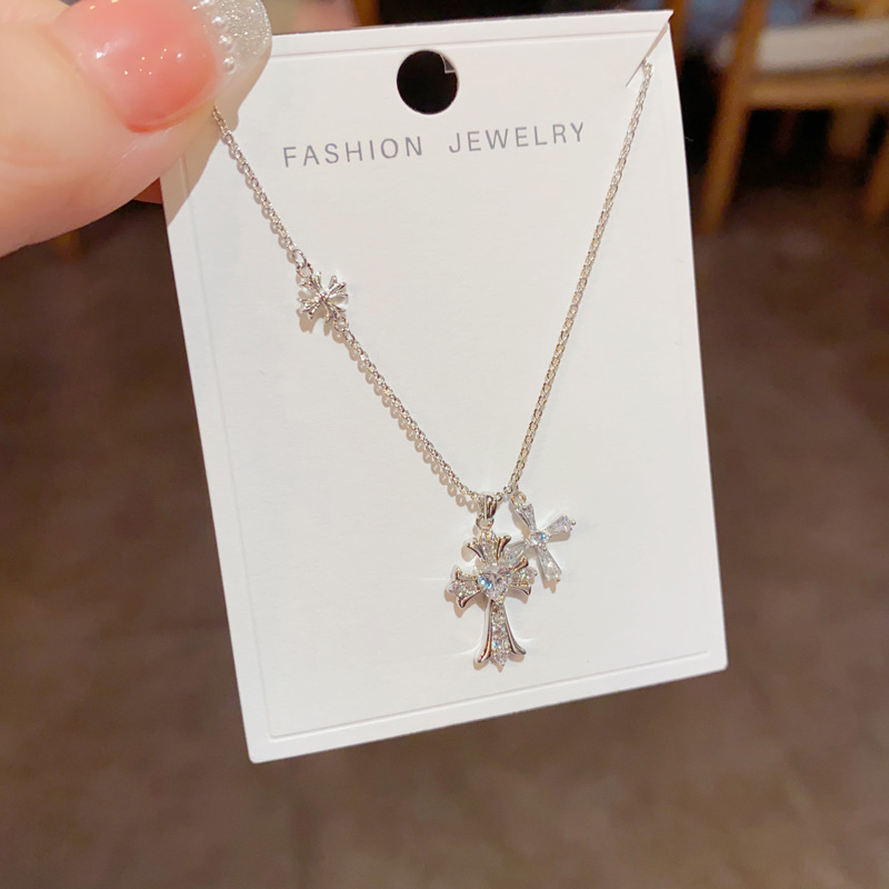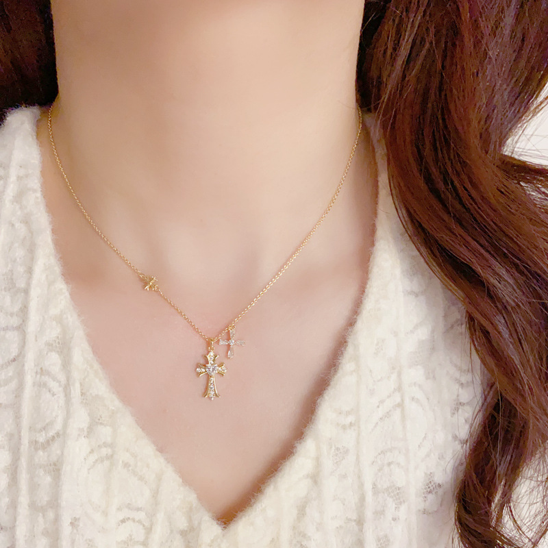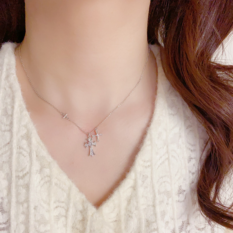 ニッチファッション、多用途、超光沢のあるマイクロダイヤモンドがちりばめられたクロスネックレス、パーソナライズされた軽い贅沢、ユニークなデザイン、ハイエンドのネックレス