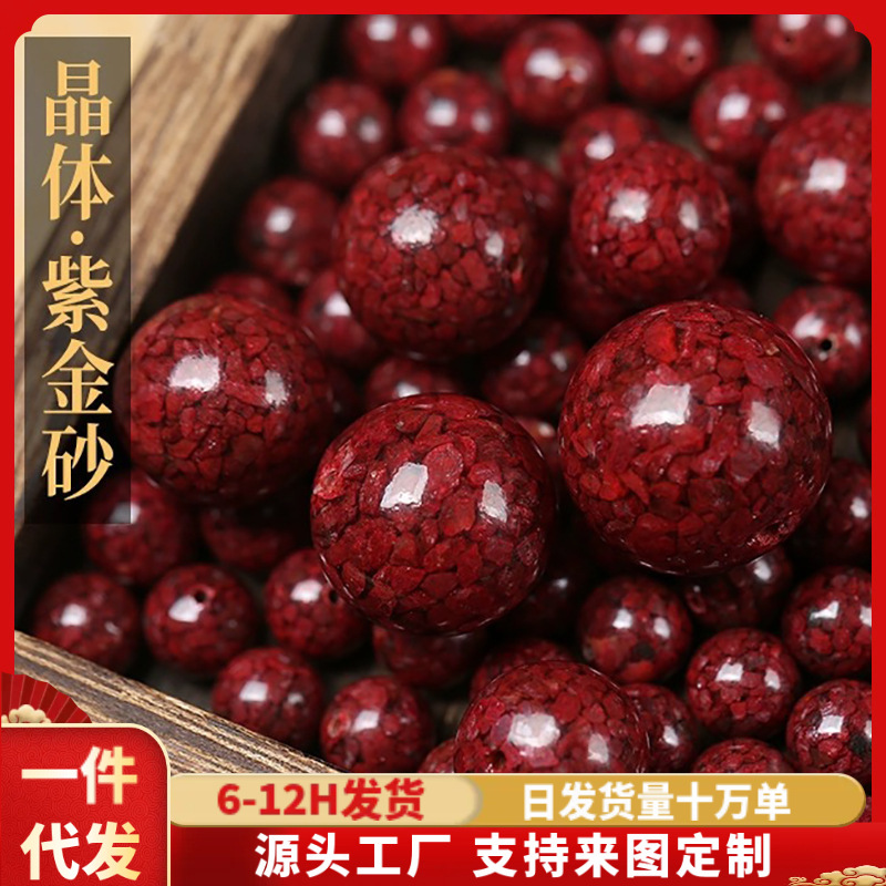 批发透光晶体砂散珠朱砂砂圆珠单颗串珠饰品工厂直销透光晶体砂