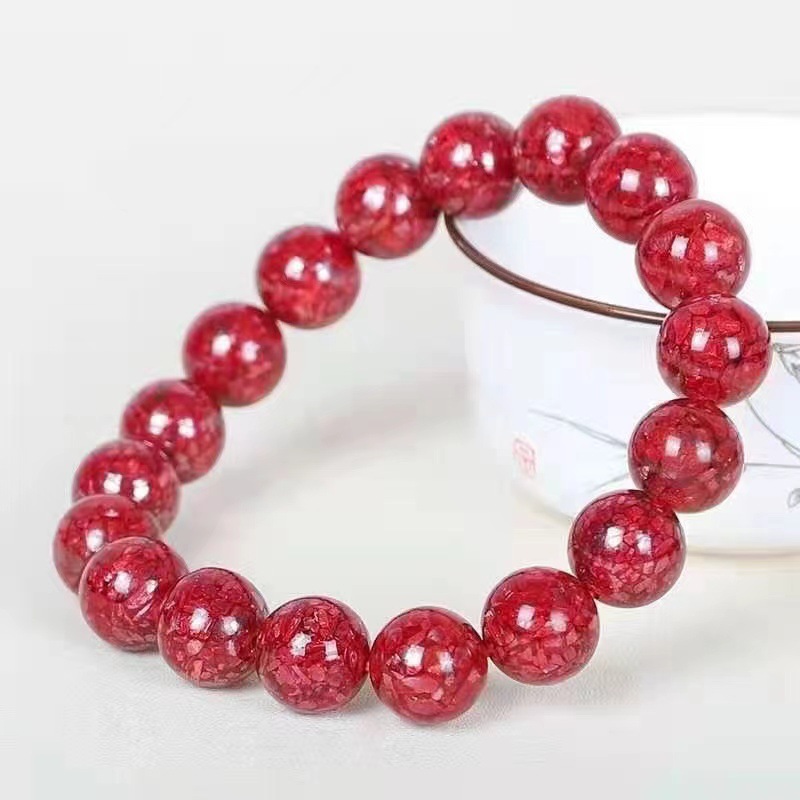 天然透光結晶朱砂手串本命年男女生肖年龍原石守護神ブレスレットカップルプレゼント