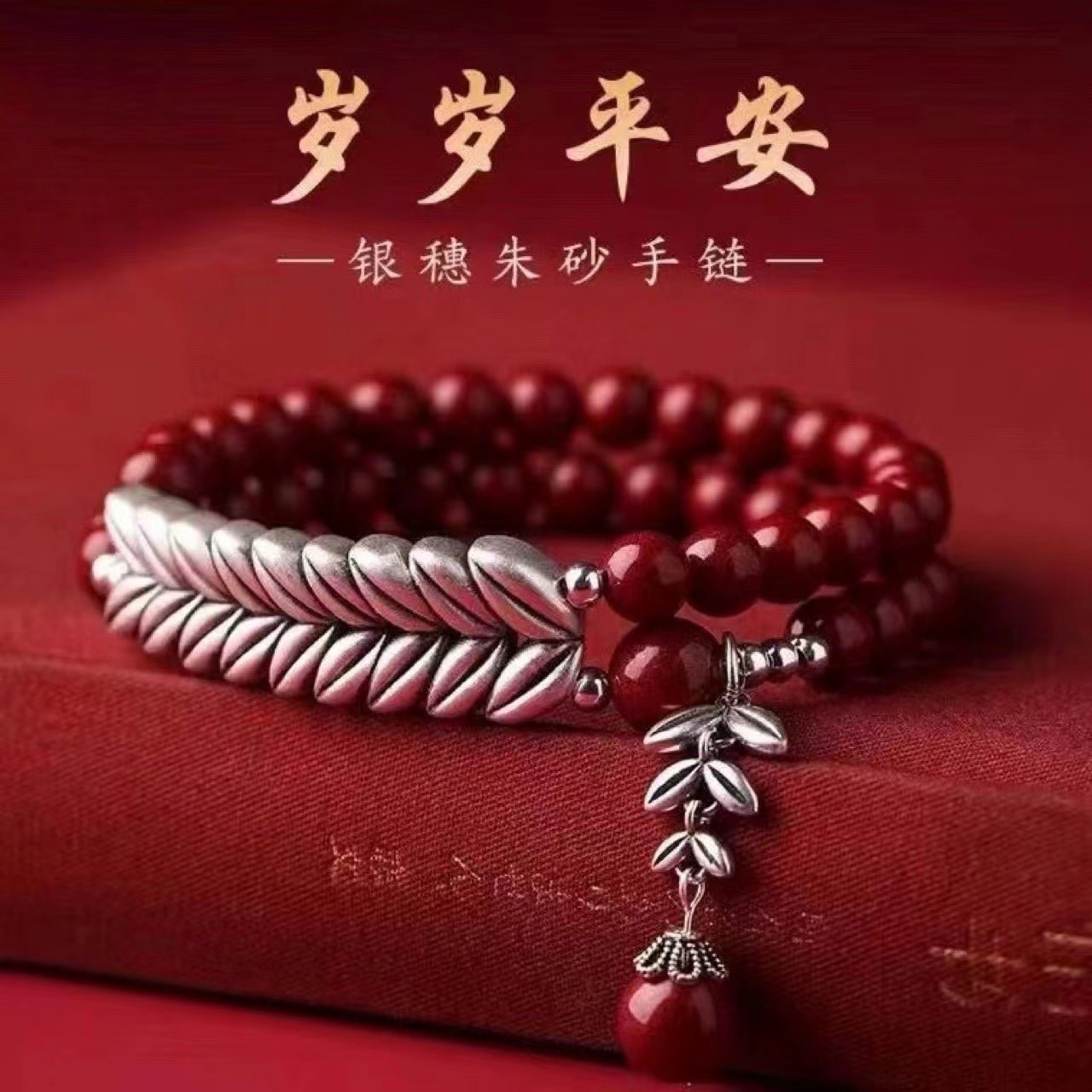 シルバーウィート、平和、二層辰砂ブレスレット、女性の誕生年ブレスレット、バレンタインデーギフト、文具