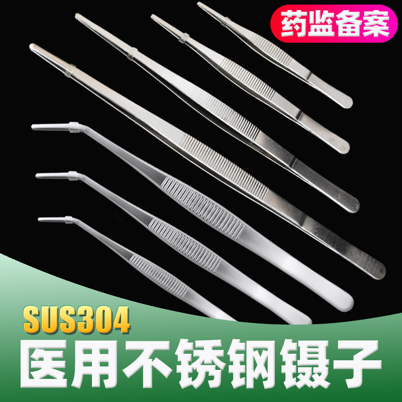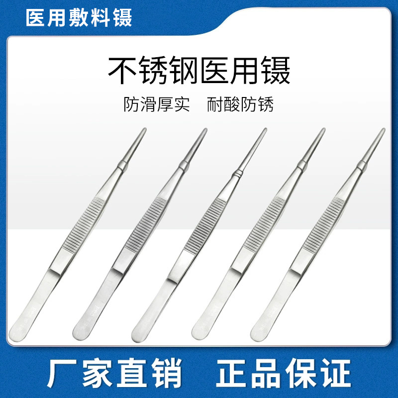 医用镊子夹子敷料镊拔毛手工园艺假睫毛不锈钢加厚防滑圆弯头镊