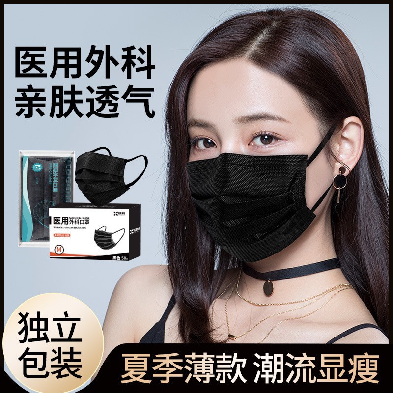 黒医療サージカルマスク使い捨て医療三層 2023 医療グレード独立包装卸売夏薄型スタイル