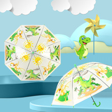 批发可爱恐龙儿童雨伞透明自动开长柄伞纤维骨男孩女孩便携儿童伞