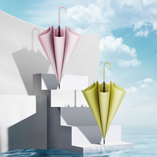 配色皮弯柄直杆伞小清新纯色文艺伞女防雨长柄伞可定纤维抗风雨伞