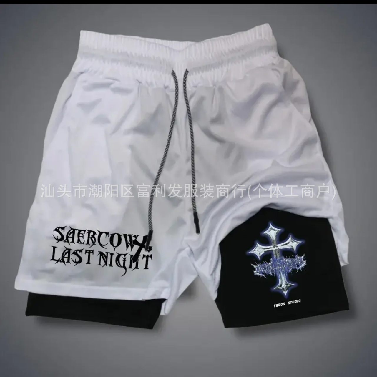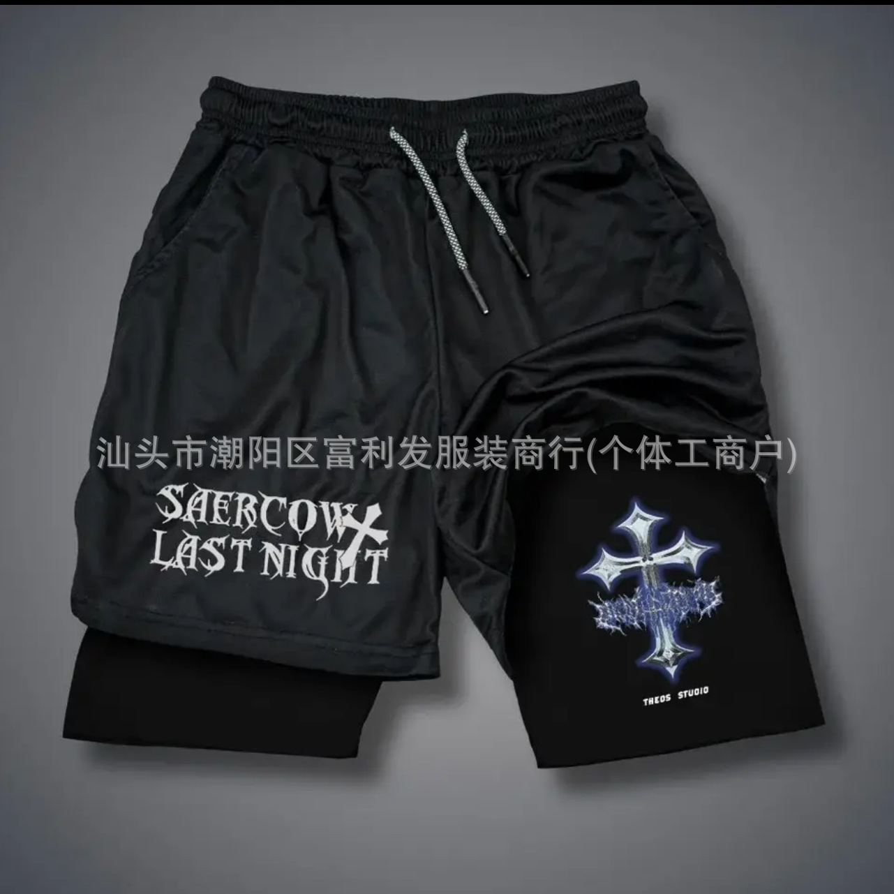 2024夏の新型クロスボーダー速売通暗黒スタイル男性パンツ二重二合一運動レジャーズボン