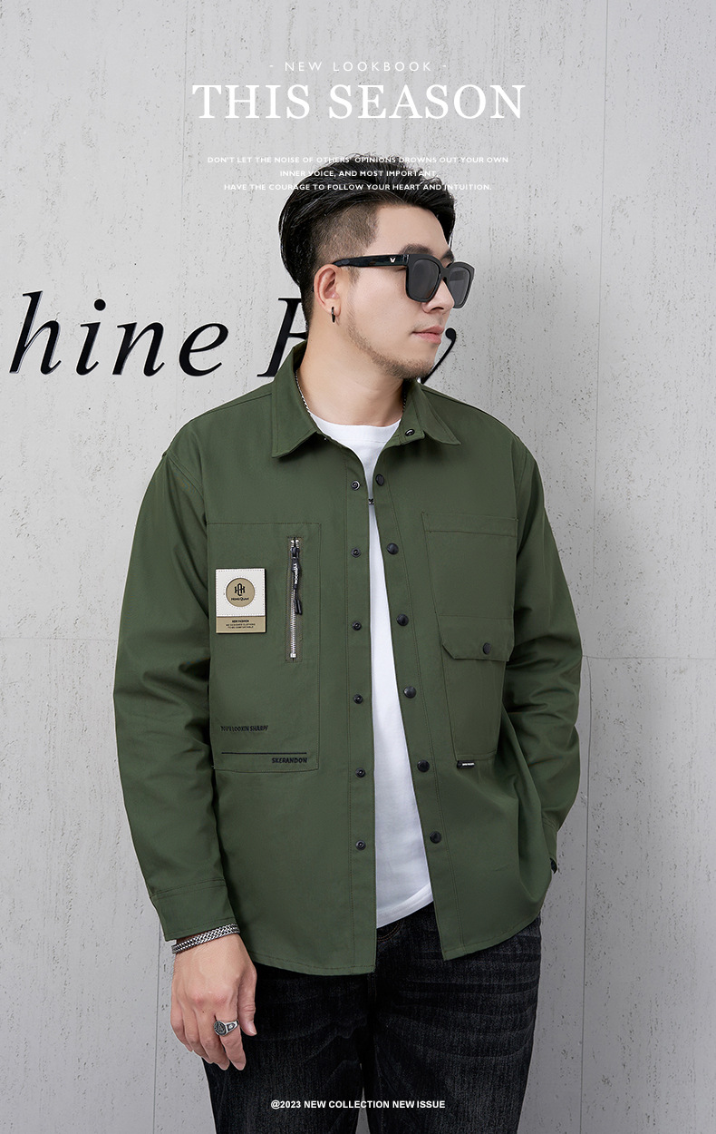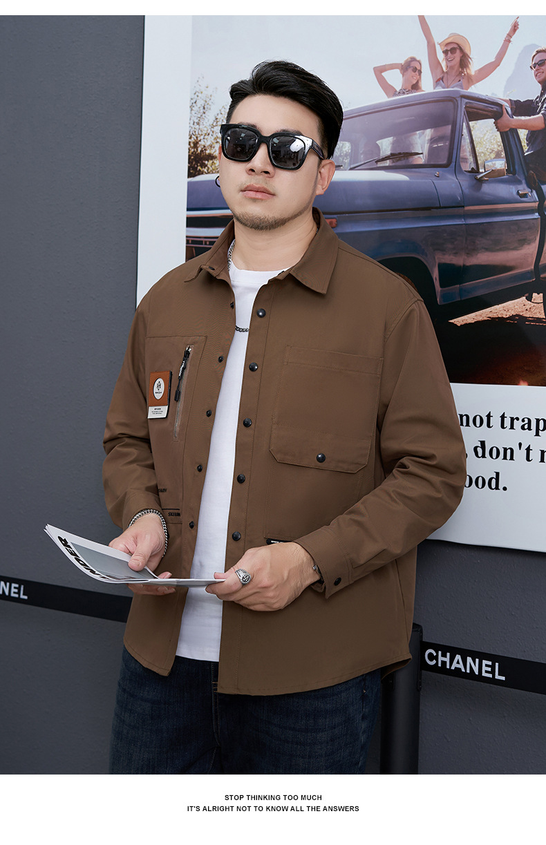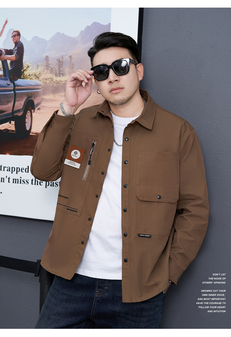 ワークジャケットシャツ 大きいサイズ メンズ 秋 トレンド シングルブレスト ラペル 多ポケット ゆったり メンズシャツジャケット