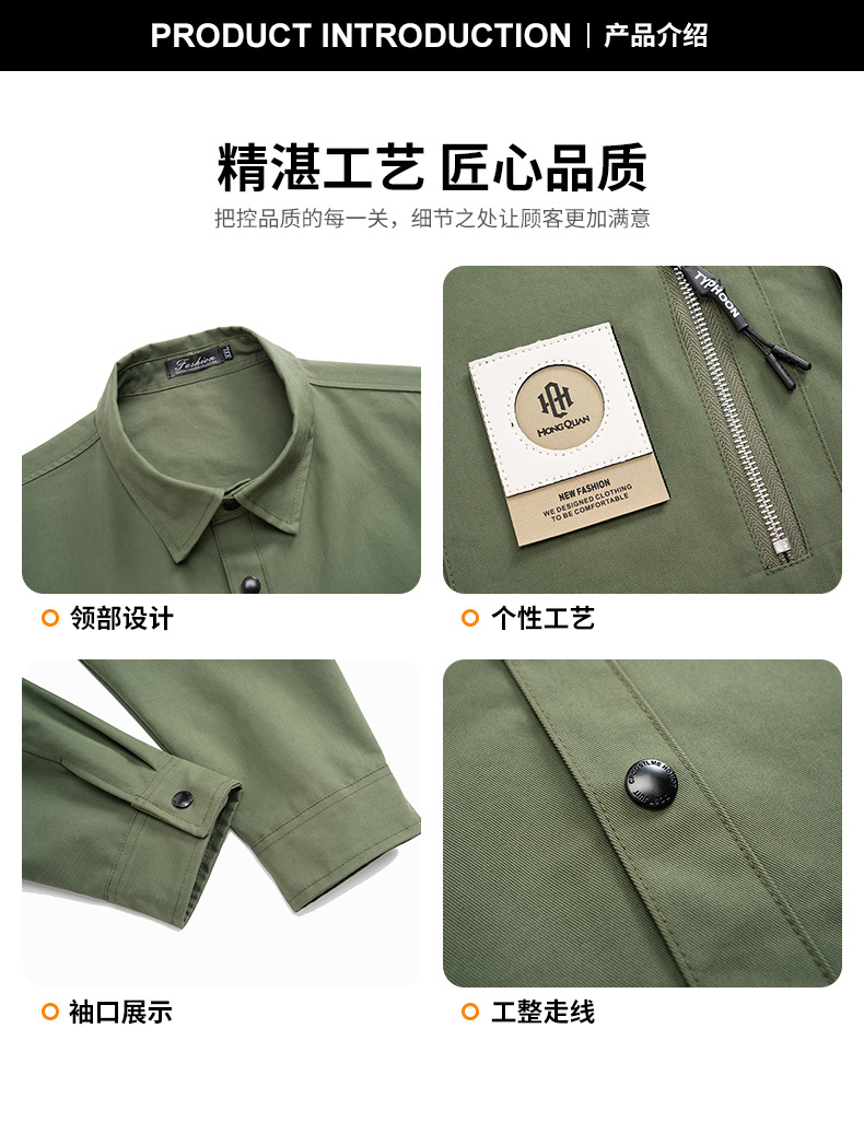 衣類の職人技 刺繍、パッチ、ジッパー装飾、フラップ付きパッチポケット