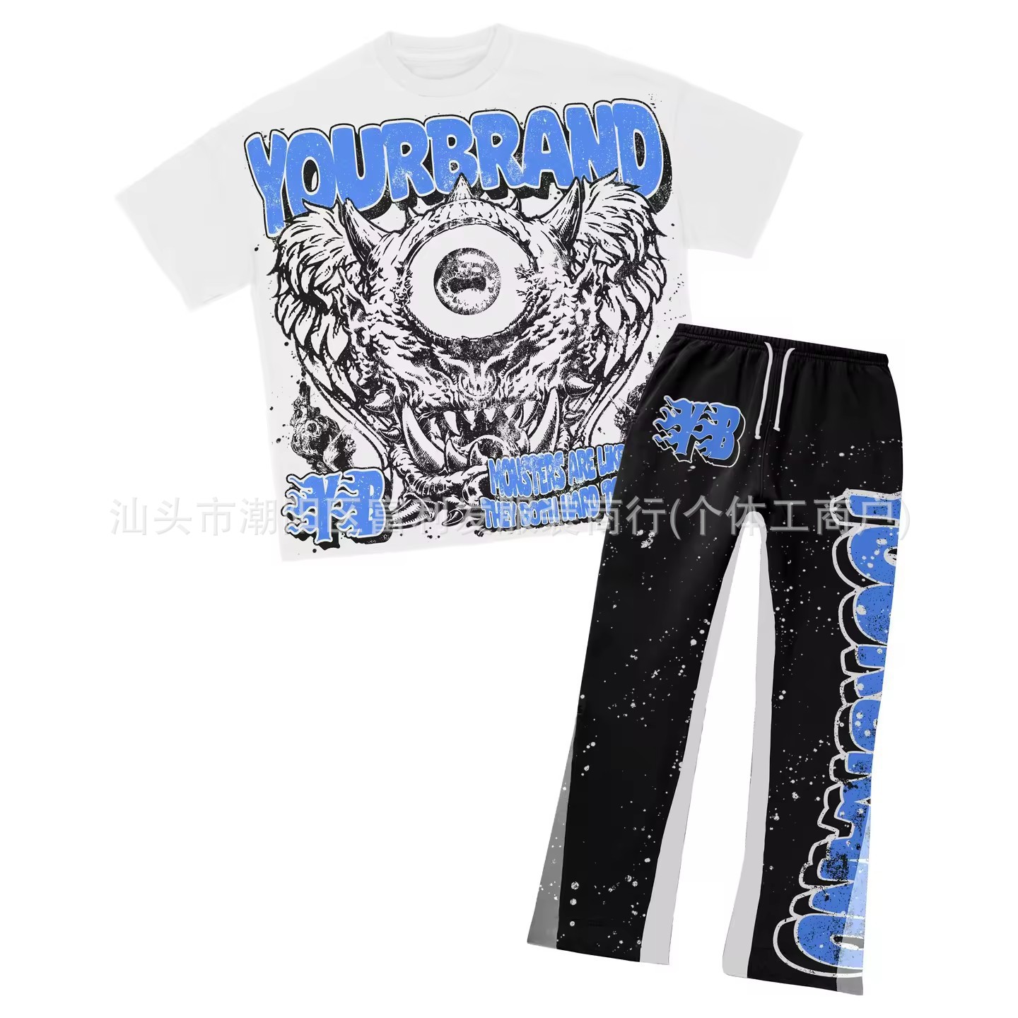 街頭落書き図形アメリカ男女同柄プリントアニメ高品質tシャツズボンセット