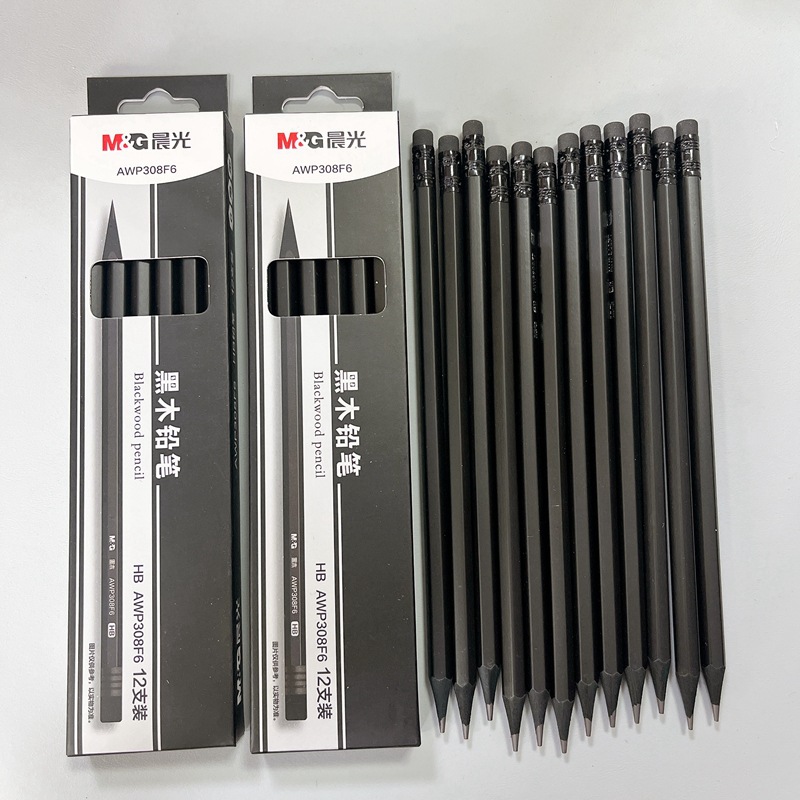 朝光308F6/308F7木竿铅笔小学生用铅笔黒木铅笔六角型2B/HB革头付き