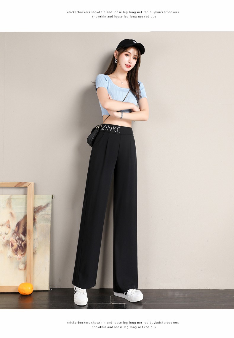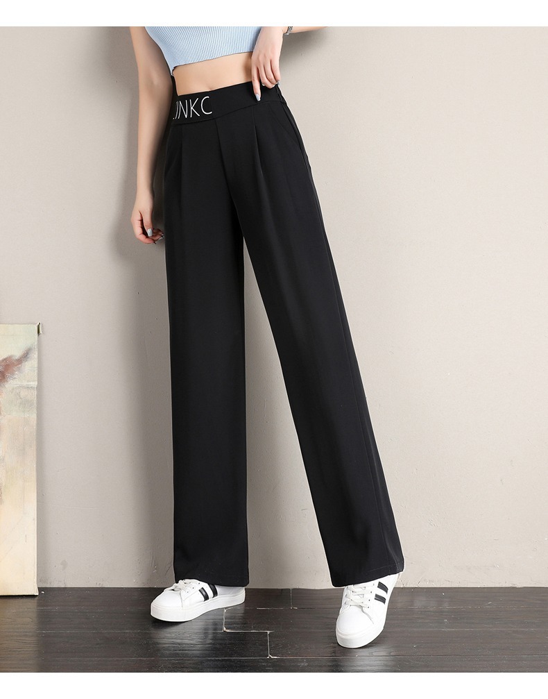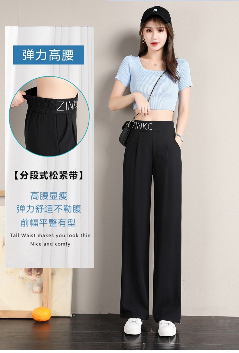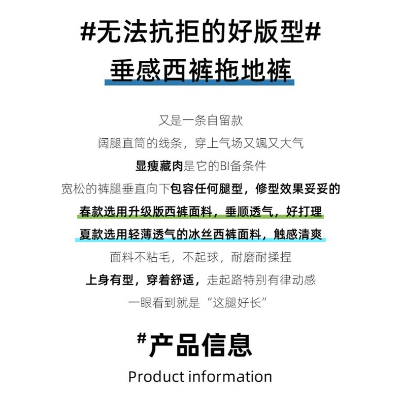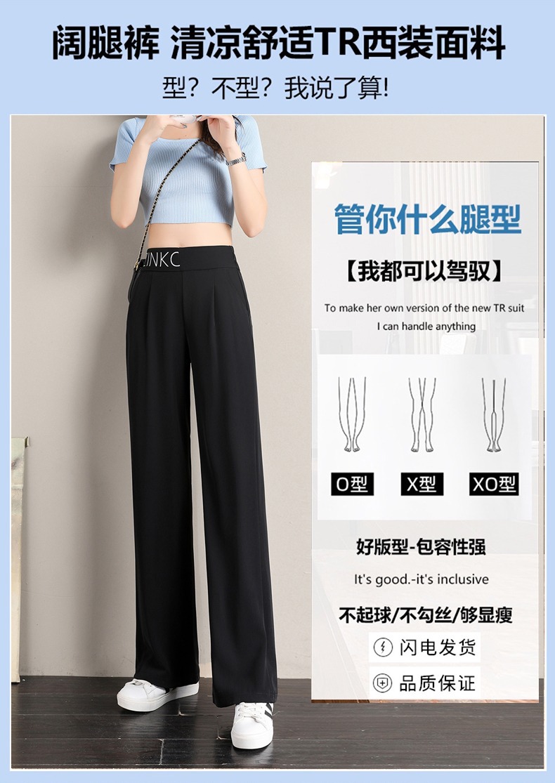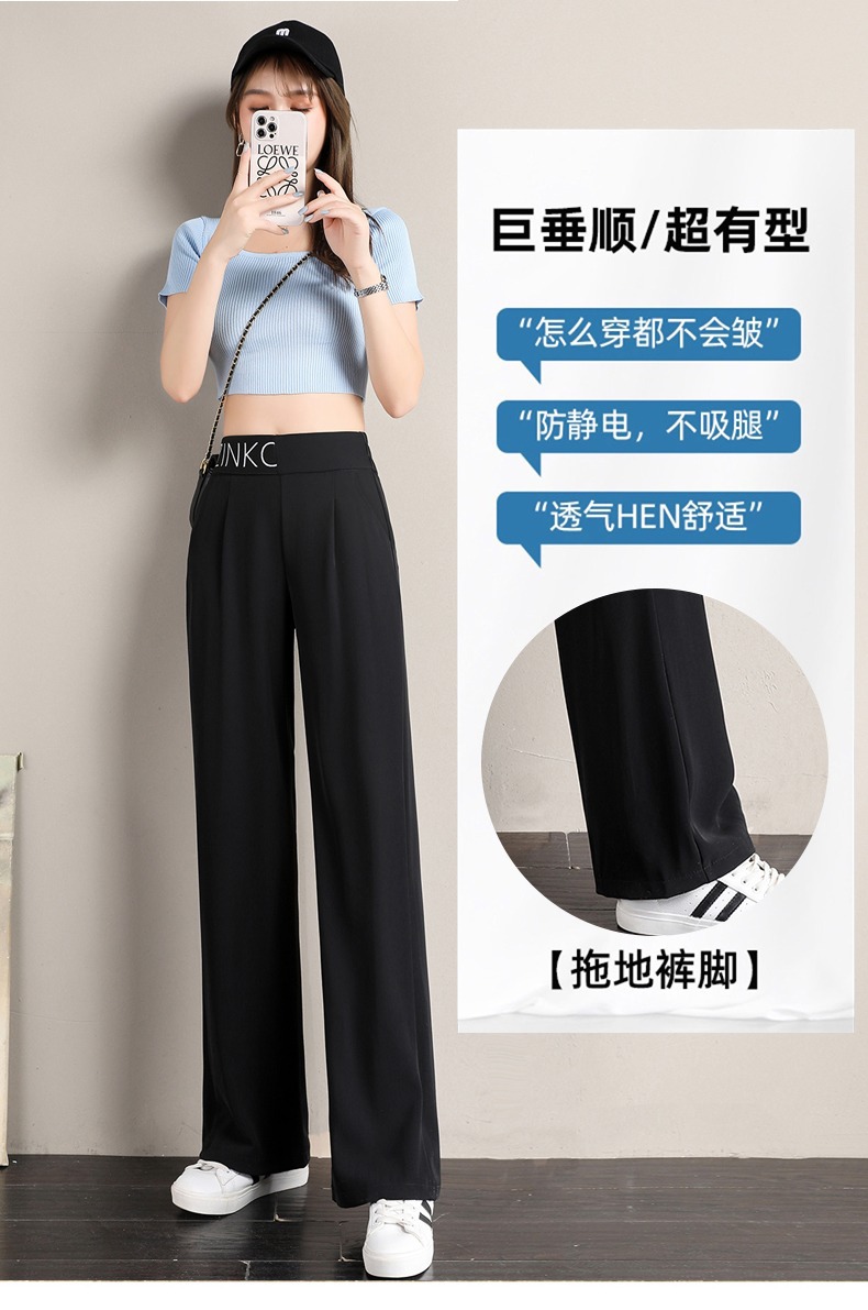 氷糸女装広脚ズボン春夏2024年新型直筒高腰ズボンの垂れ込み感がゆるいシンプルなスーツズボン