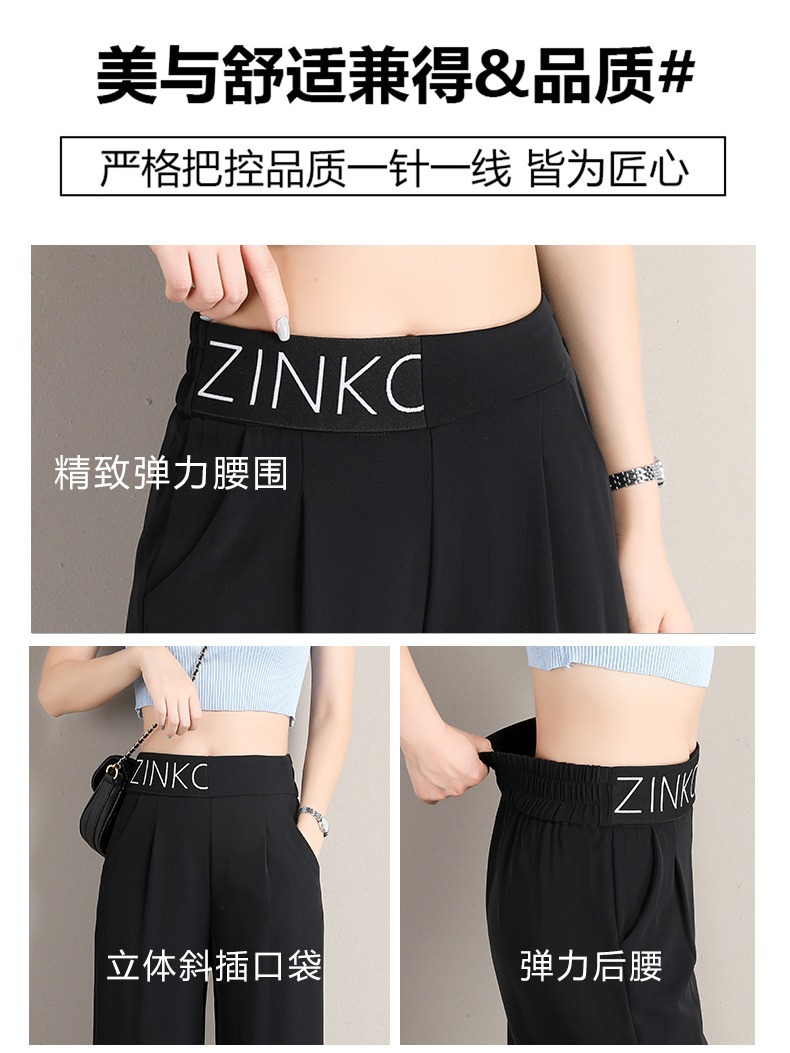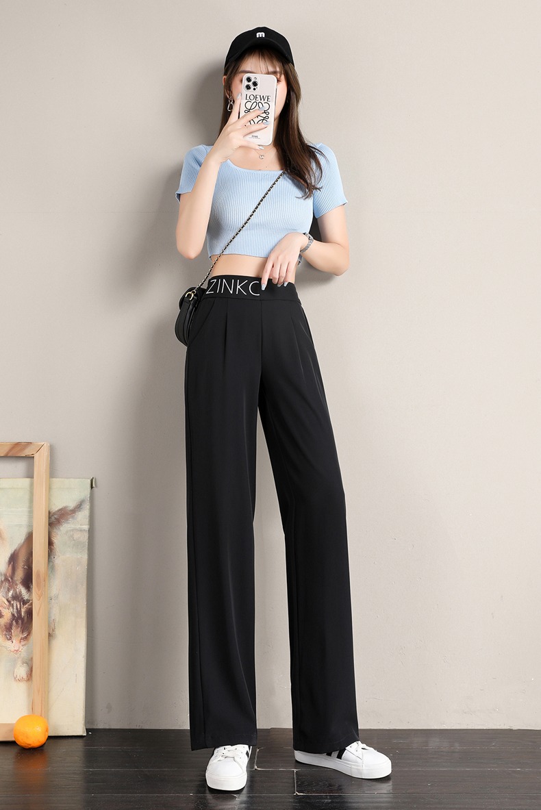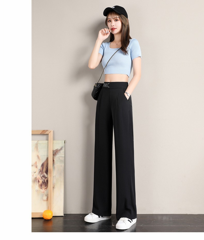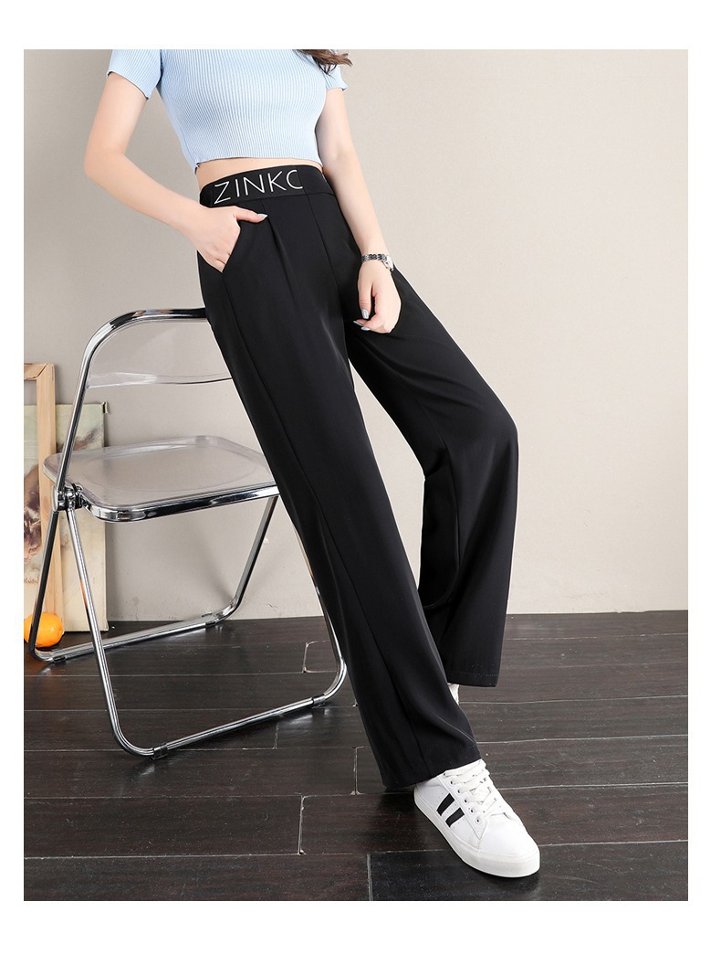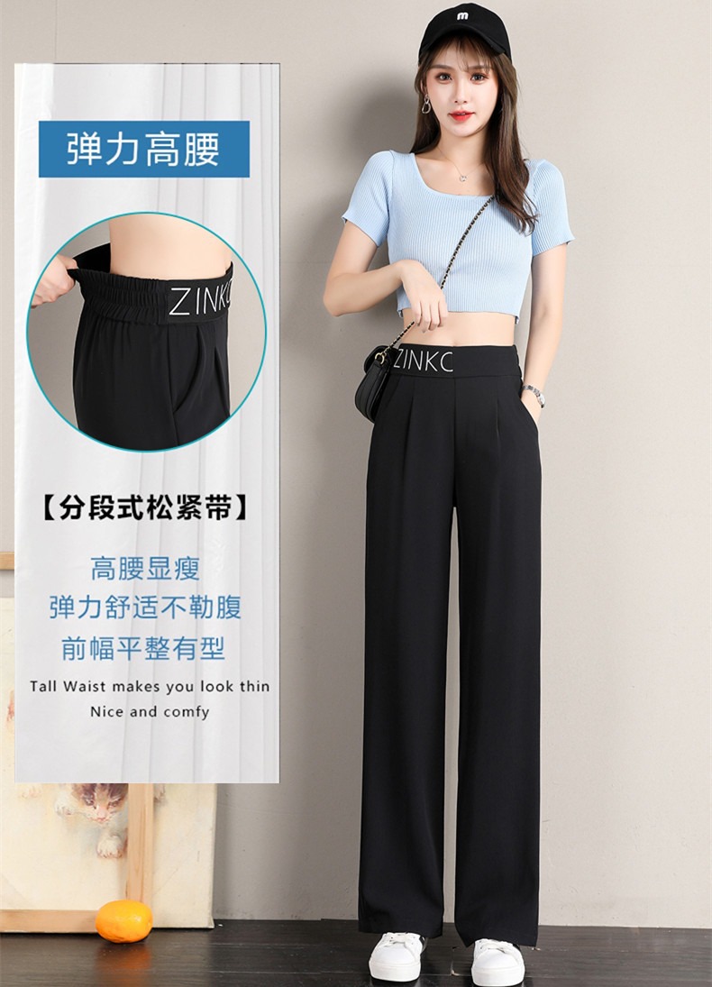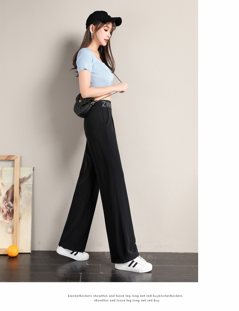 氷糸女装広脚ズボン春夏2024年新型直筒高腰ズボンの垂れ込み感がゆるいシンプルなスーツズボン
