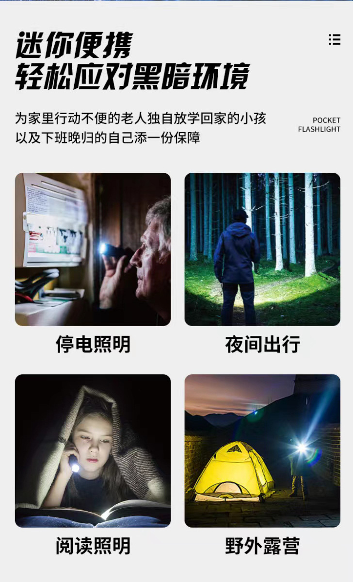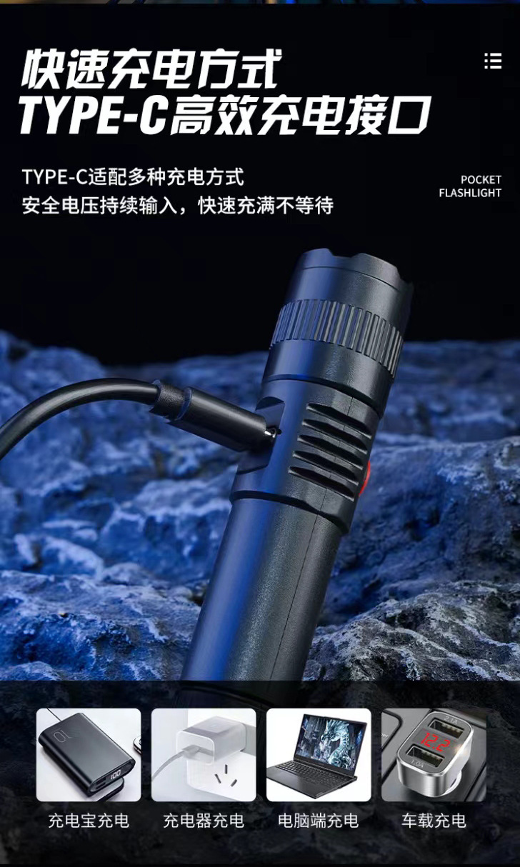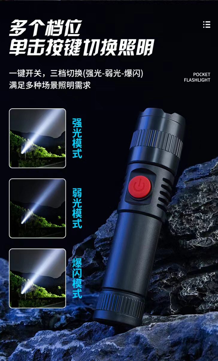 屋外強光懐中電灯充電可能多目的遠射携帯ハイライト家庭用緊急ミニ