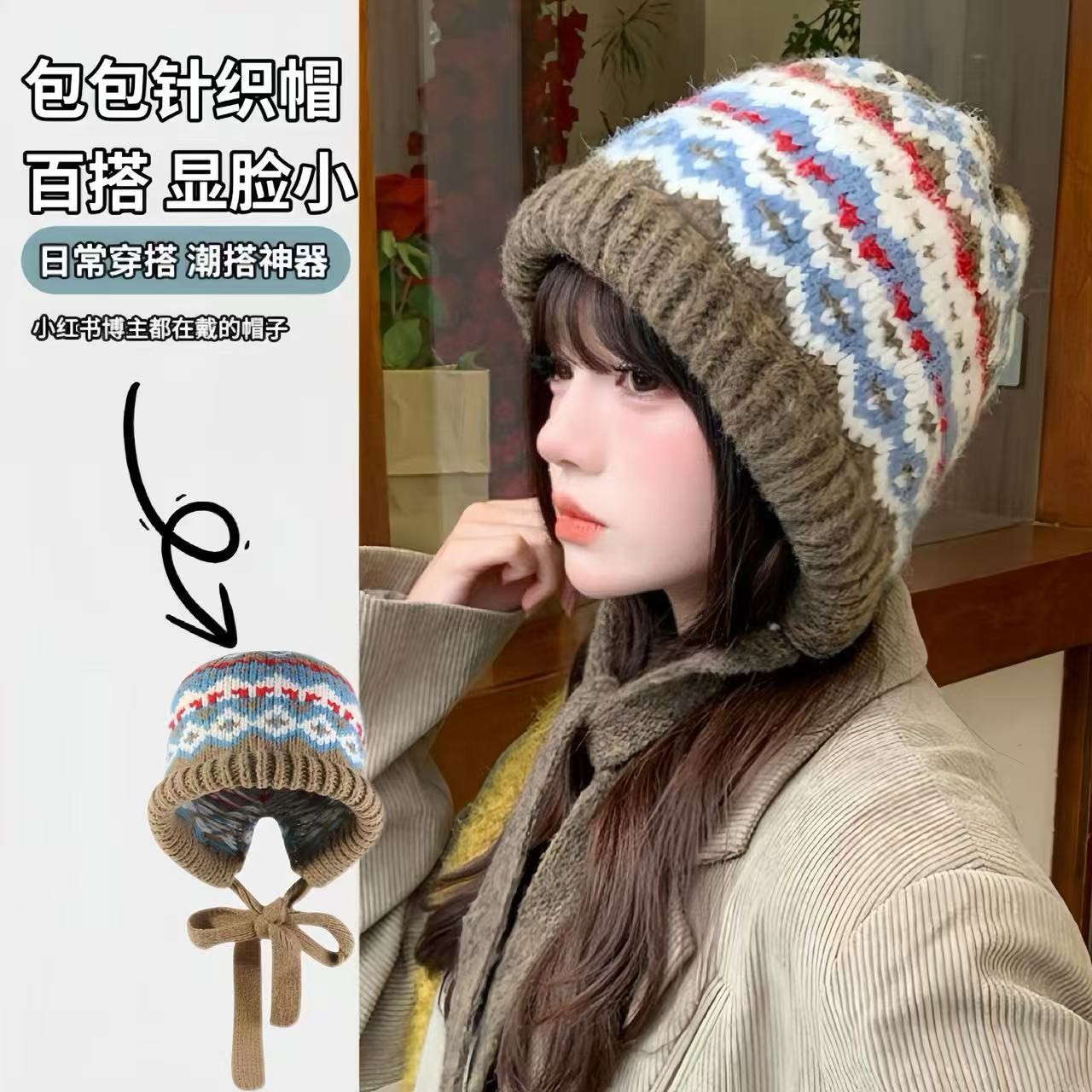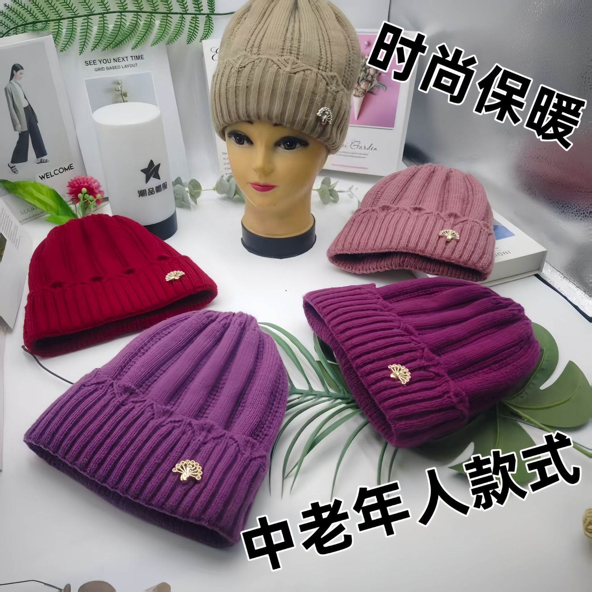 帽子 帽子女冬 保暖帽子 针织帽 毛线帽 妈妈帽 爸爸帽冬