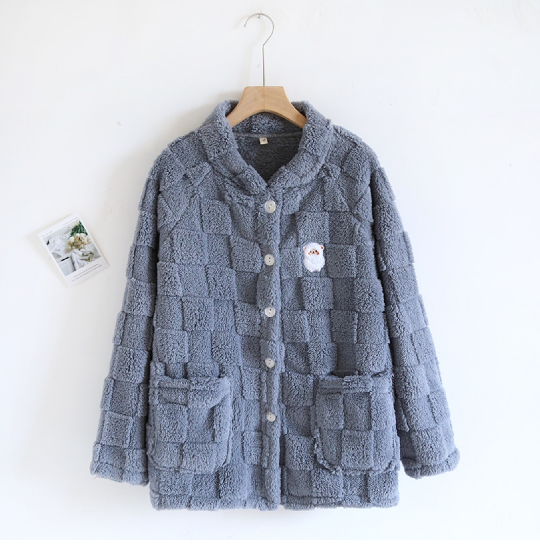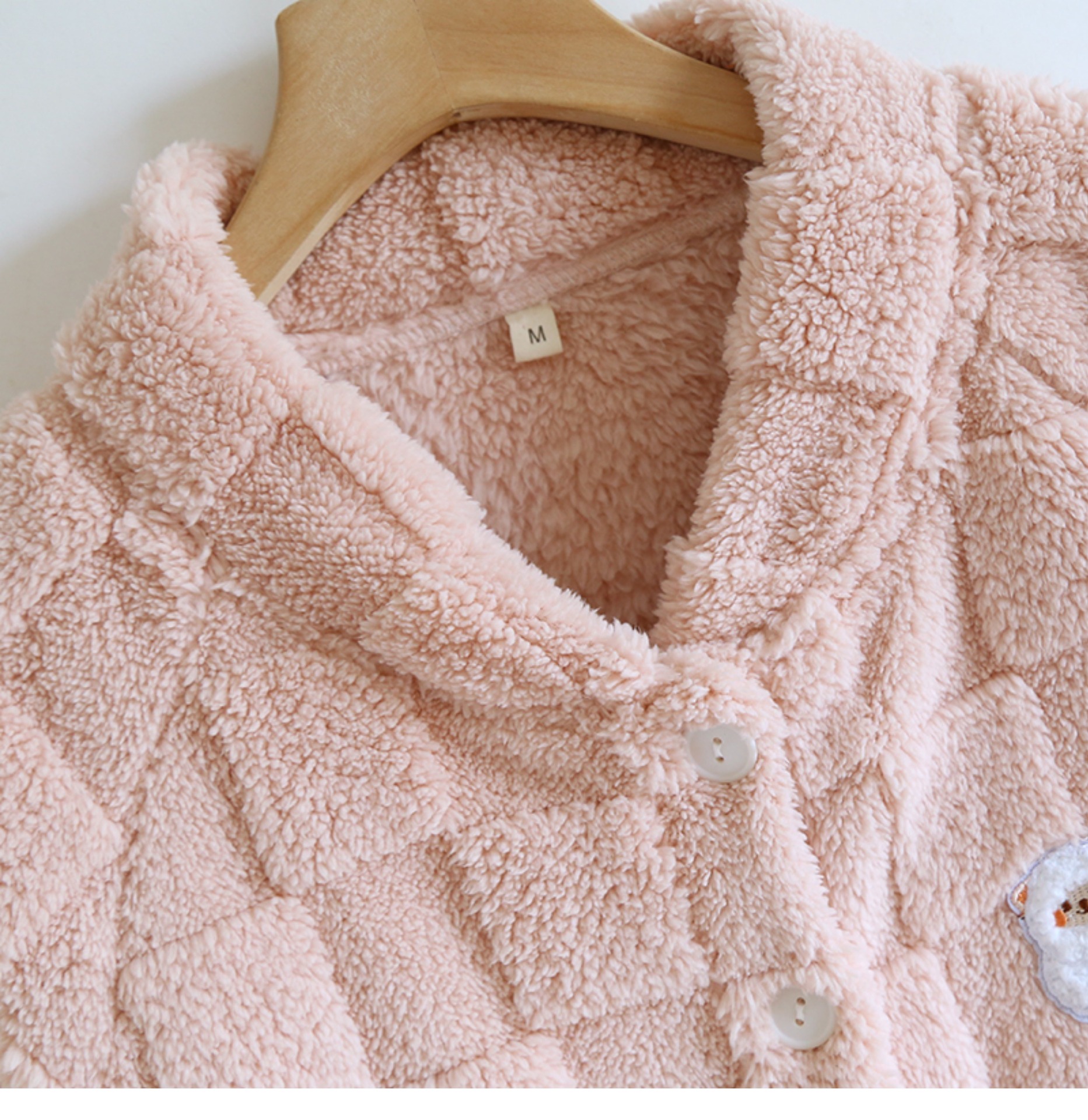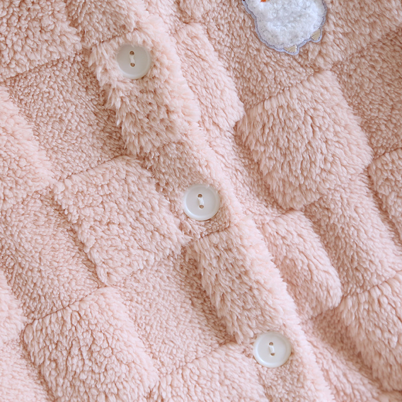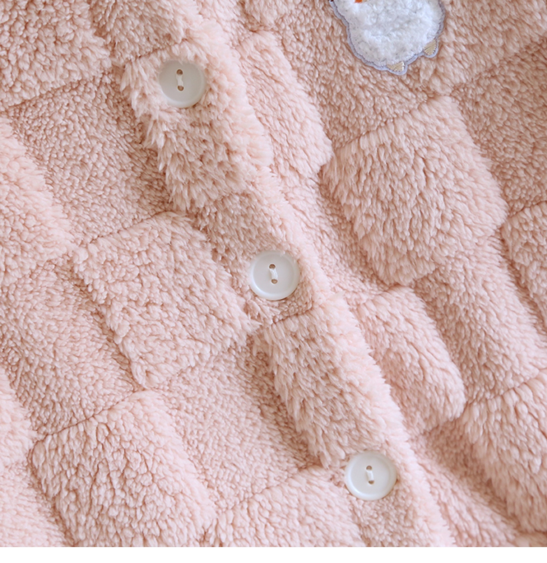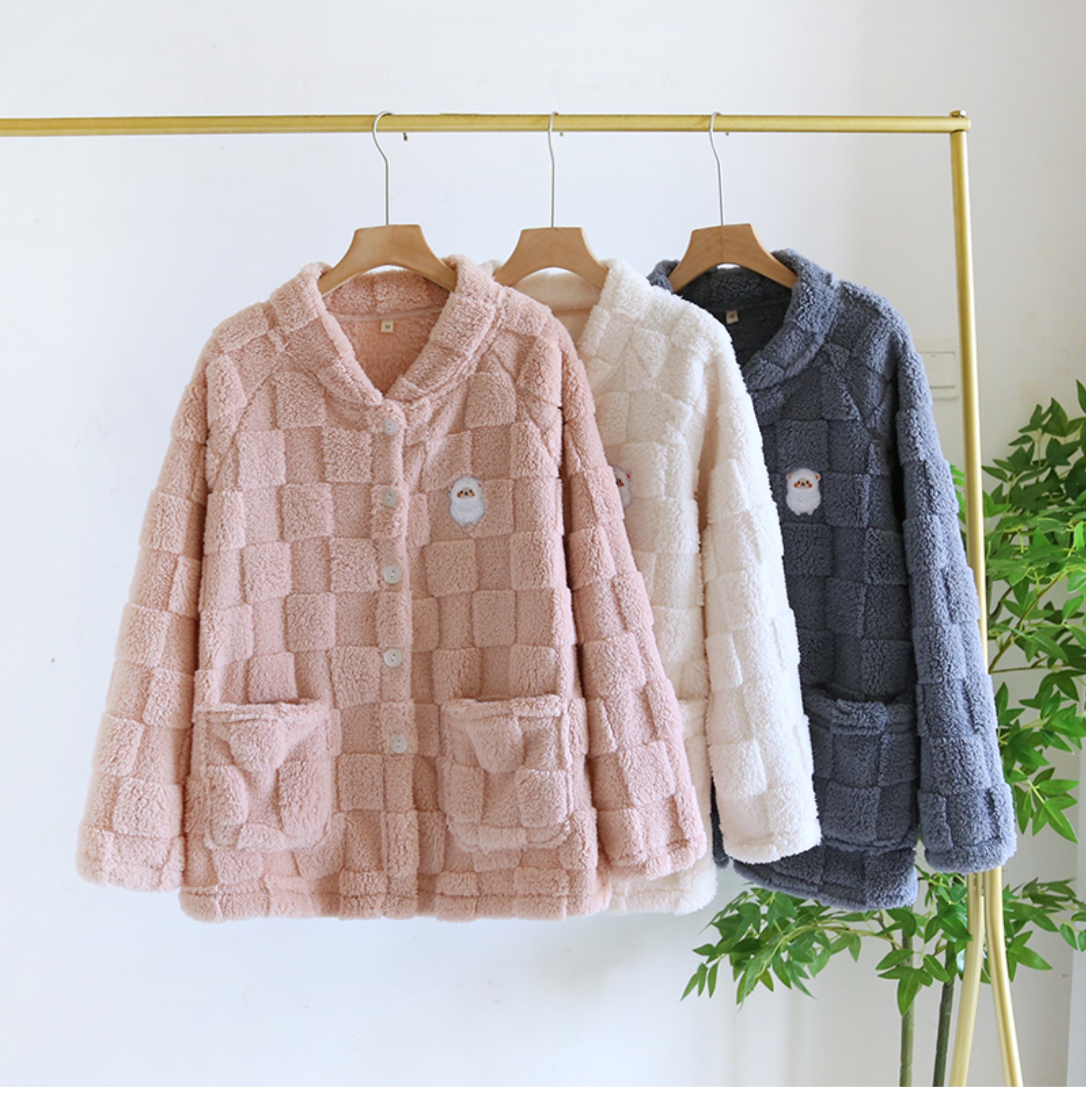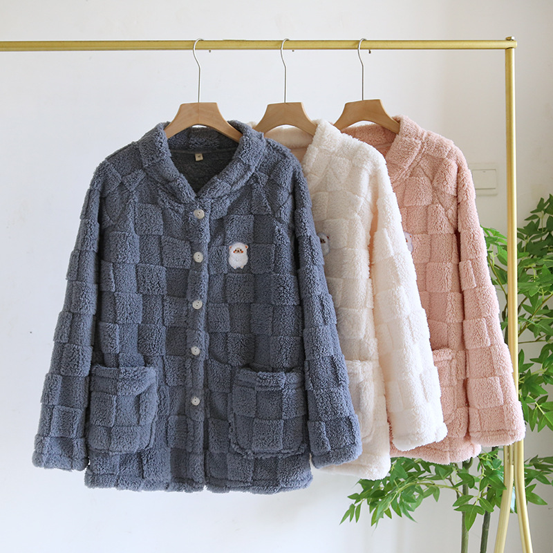 秋冬フランネルの上着の女性は保温のワンピースのパジャマの長袖のカーディガンを厚くします。