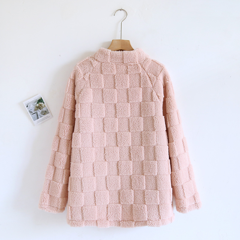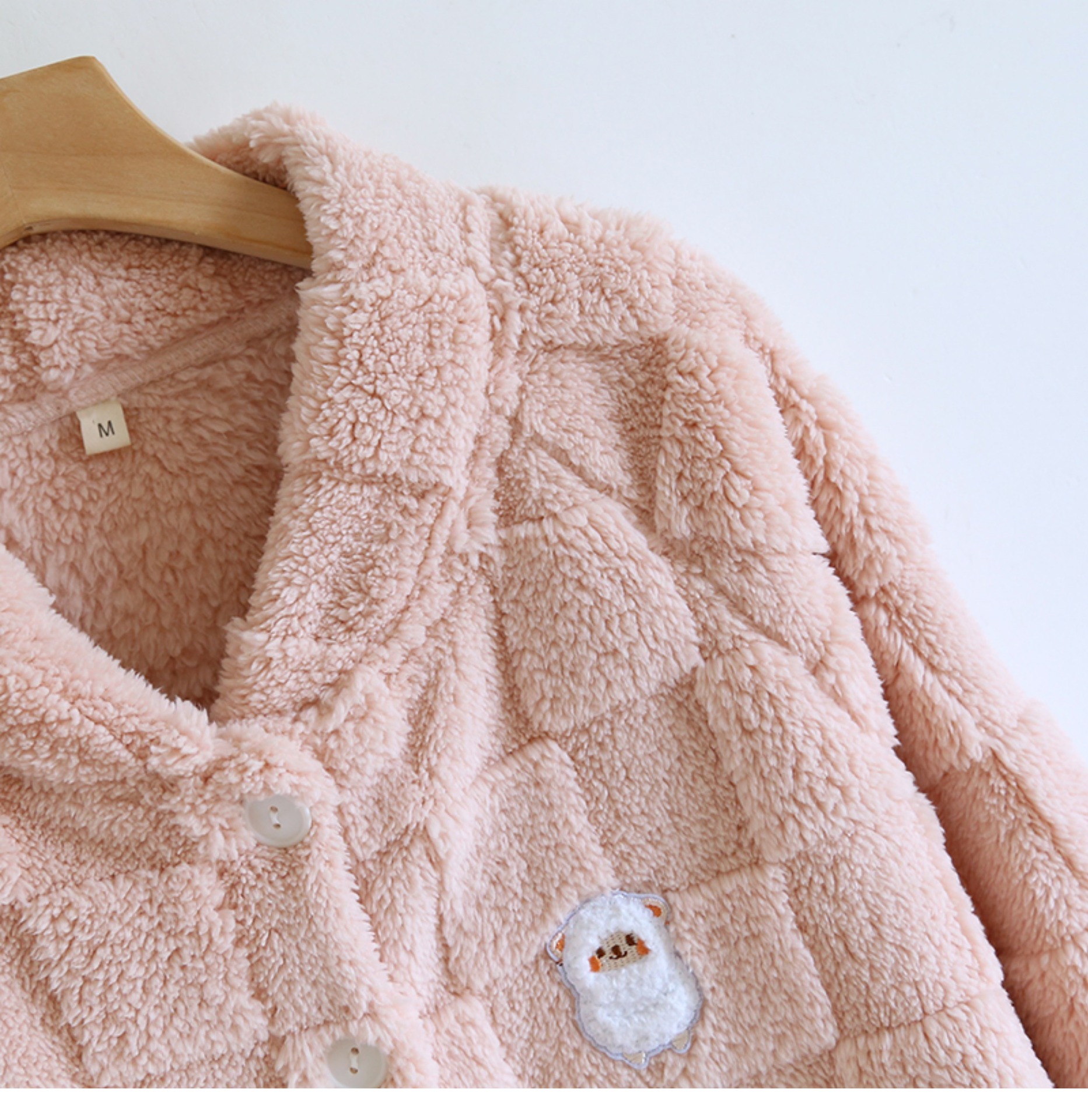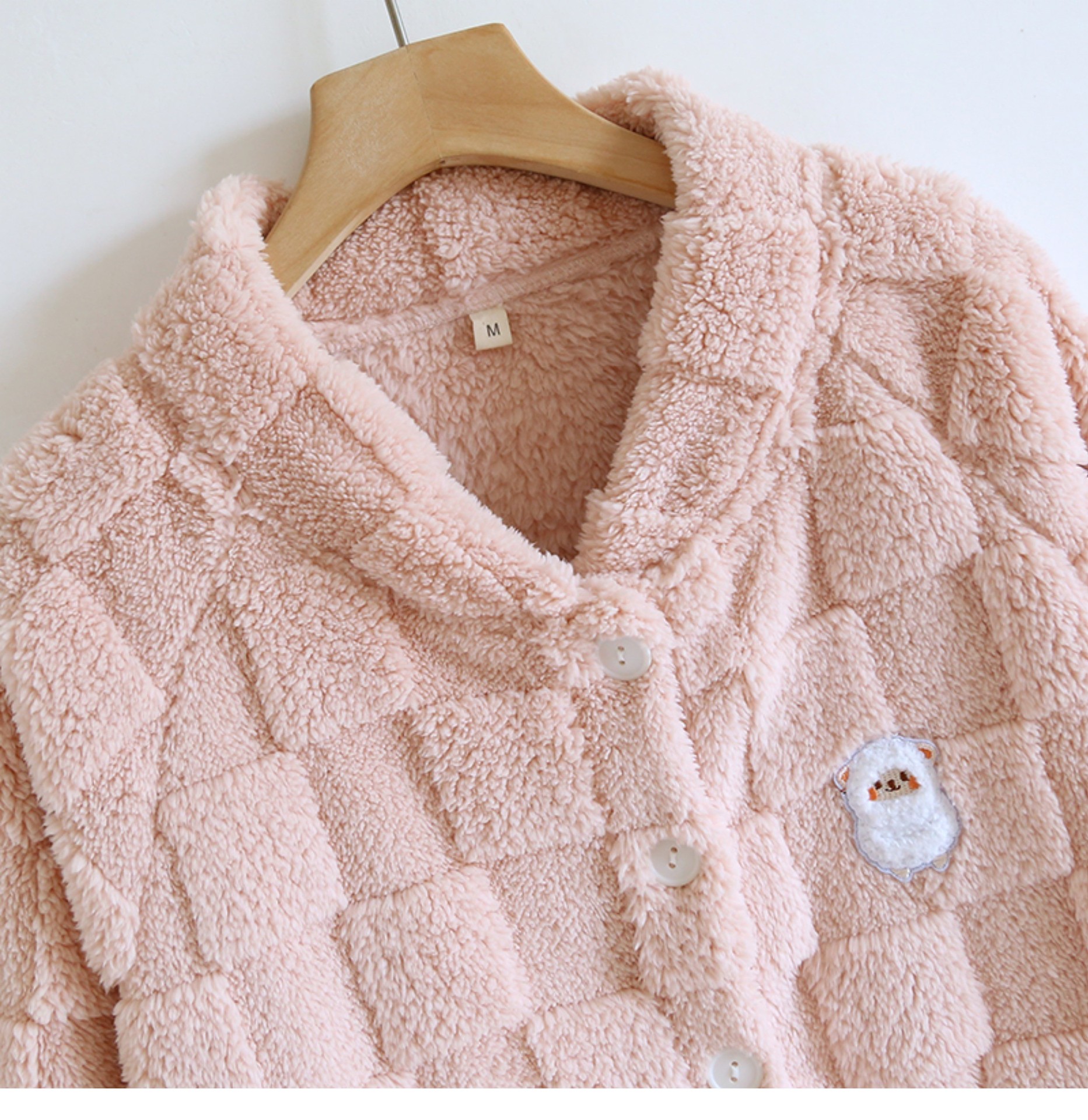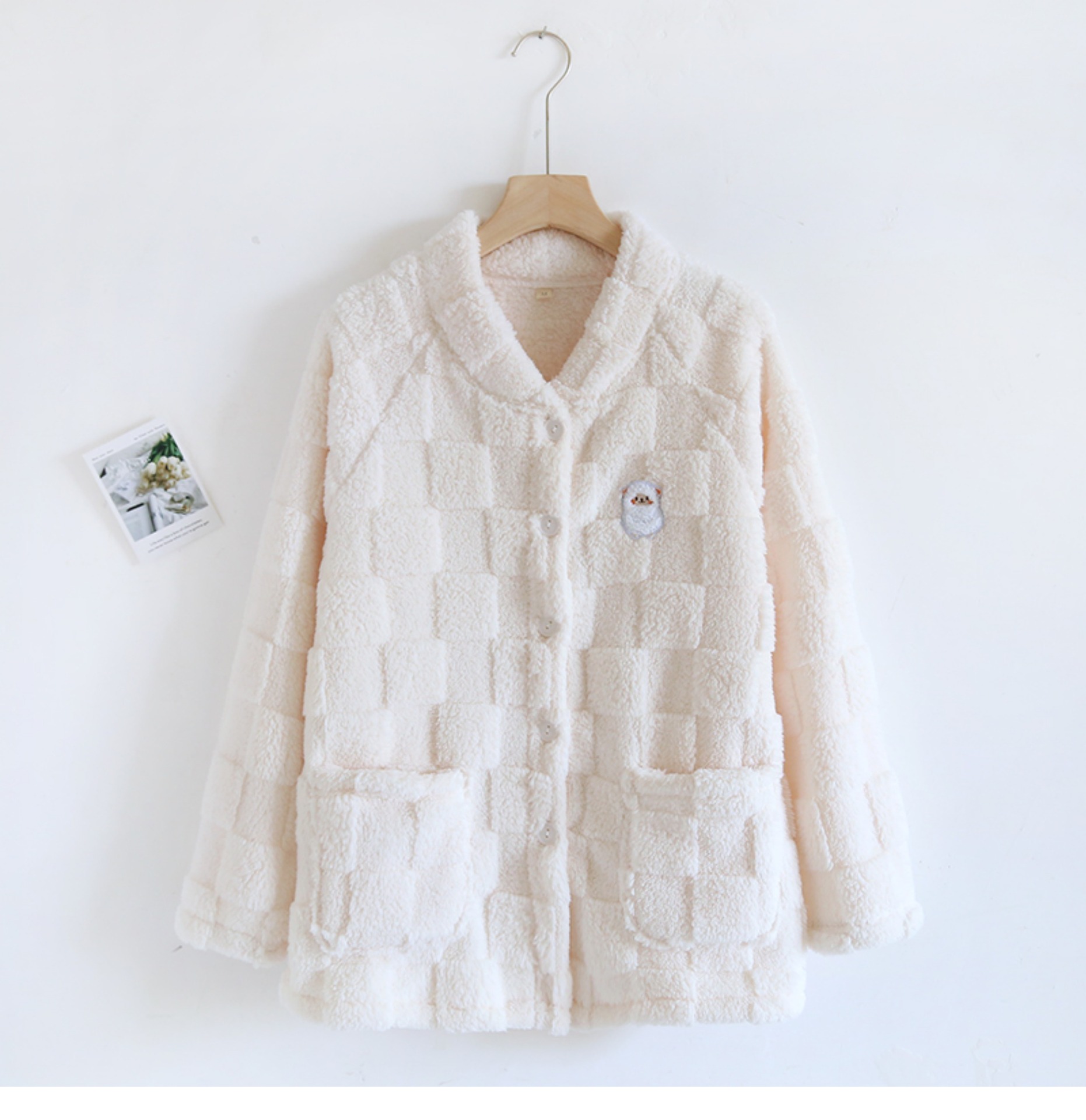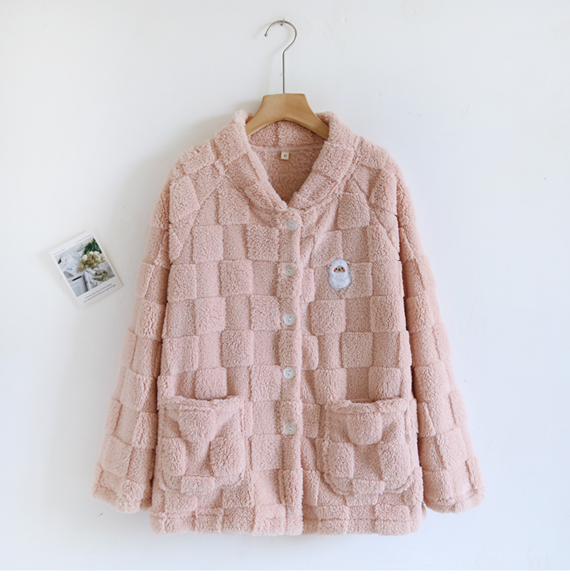 秋冬フランネルの上着の女性は保温のワンピースのパジャマの長袖のカーディガンを厚くします。