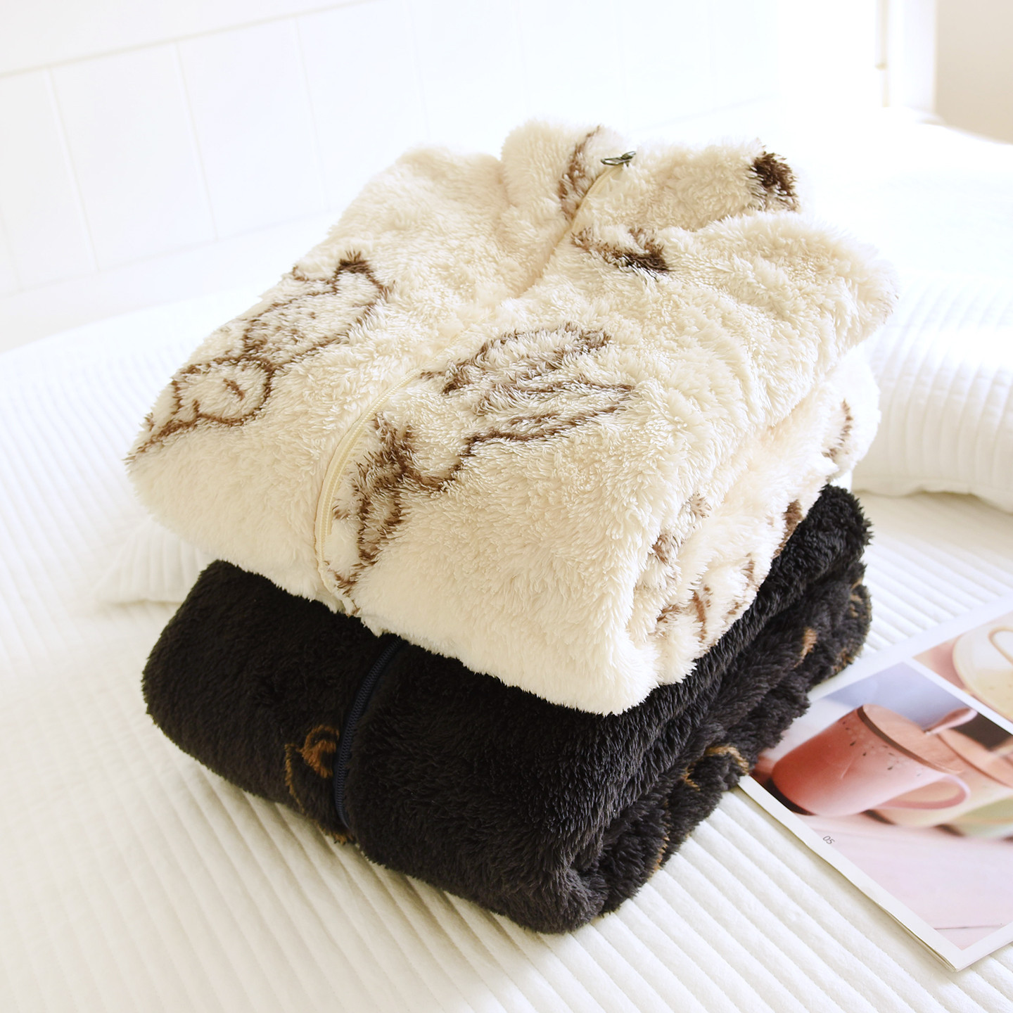 秋冬カップルのフランネルのファスナーの上着は、単品の家庭服を厚くして、男女はコーラルベルベットのコートを着ることができる