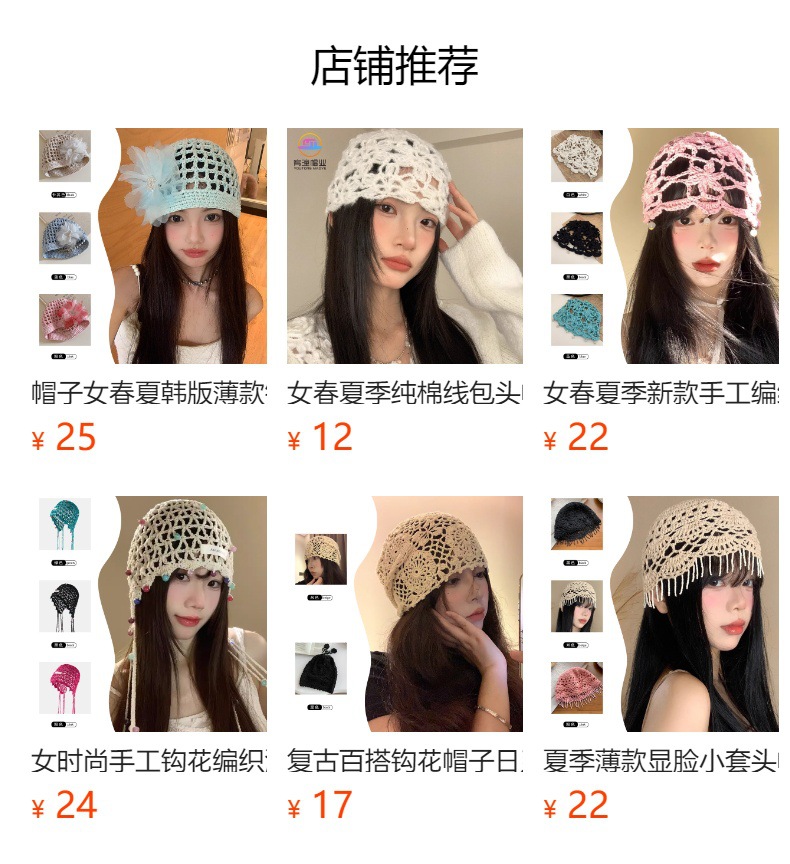春と秋のフック編みレディースウールニット帽子薄い中空手作り女性フック帽子夏のインターネットセレブ包頭帽子